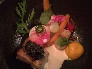 For pictures and full review, visit http://melicacy.com/?p=5028Wafu Marinated Salmon Carpaccio ($16.50): Divine slices of fatty salmon are augmented with a wafu marinate that brings out the bright brininess of the ocean.French Foie Gras Flavoured in Miso ($18.50):The French Foie Gras Flavoured in Miso is a must-try.This is a Japanese take on the French foie gras. The miso glaze added a whole new dimension to the fatty liver. Seared till caramelised and crisp on the surface, with tender interior that disintegrates in your mouth, there is a perfect balance of sweetness and savouriness. Genius interpretation.Taraba King Crab with Soy Butter ($48.50 for 2 pieces)