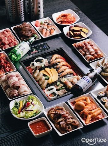 After watching streams of people queue up for I'm Kim Korean BBQ for years at SOTA. I finally decided to give it a try. It's main target audience are youngsters or students who want some korean bbq at a reasonable price. The prices range from $19.90++ to $24.90++ for weekend lunches. Check out therir facebook page as they randomly have facebook promotions just like the one they had on the day I visited, at just $19.90++ per pax for a group of 6 and more!They have a rather huge dining area, that can fit pretty much any party size. The minute you walk in, you will realize the drinks are on the right, cooked food is displayed against the wall at the back of the restaurant and all the tables are in a horizontal layout, parallel to the main street. You will also notice that it doesn't have a strong bbq smell, that most girls are afraid of smelling like, after the meal! Do not fret as they have vents to suck up the BBQ smells, there's even ocsilating fans to keep the air fresh.At the cooked food station, there's some sushi, soup, korean pancakes, noodles and steamed rice. I highly recommend trying their fried chicken wings. They are HUGE! Not to mention, these chicken wings put 4 Fingers to shame! The skin is so crispy, the meat is tender and the sauce has a tangy sweetness to it. Pick your vegetables and seafood too! The prawns were fresh looking and rather sizeable. The variety of vegetables should be sufficient for most. They were replenished frequently too! Lots of vegetables to go along with the meat. Lettuce is fresh and crazily crunchy and it is a MUST HAVE for me at Korean BBQs because I always use them to wrap up my meat.Moving onto the actual bbq, the bbq surface area was decent enough for 4, you could seperate your meats, ie (beef, non-beef or spicy and non-spicy) The hot plate itself got hot pretty quickly and you can control the temperature on the side of the hot plate. I would usually cook the beef atop the vegetables, such as onion or mushroom, so that the vegetables would absorb all the juices from the meat and at the same time, the meat would be good in a reasonable amount of time.After cooking, the meats were tender and juicy. Definitely better than I had expected. Grab a plate or two and stack them up with meats and also get ready to stack up another plate of cooked food! Also, to my pleasant surprise, the staff were extremely friendly and taught us how to cook and eat the meats with the vegetables. I had no problems getting the staff attention whenever I needed help or assistance.They had a varienty of meats, such as marinated ribeye, beef roll, pork belly, chicken and for those who love spicy. Go for their volcano style seasoned meats, you will not be disappointed.Check out the colours of the beef and also the mountain fo raw meats, eying for an empty spot on the BBQ hot plate! The Beef Rolls cook fast and I cut them up into even pieces. These fine slices of beef are delectable and easy to eat. They are savoury but not overwhelming, and make for the perfect start to my Korean BBQ feast.The bacon strips were my favourite. Probably the most unhealthy, but it was salty and juicy, overflowing with fatty goodness. The meat also so very soft and fresh. Bacon lovers will probably love the unlimited amounts of bacon available here.There's also free flow of non-alcholic drinks such as iced water, lime juice, mango juice, rice punch and korean barley tea. All the drinks tasted rather diluted to me but the sweetest drink for me which I liked was the rice punch. They also sell alcoholic drinks for those who want a complete Korean bbq meal!Conclusion : I'm Kim delivered great value meats and cooked food buffet with excellent staff service and atmosphere. Head here for a fuss free korean BBQ that is gentle on your wallet!…查看更多