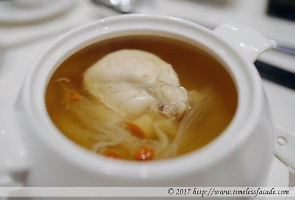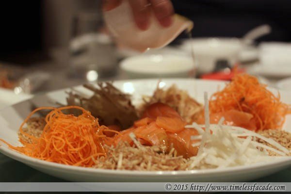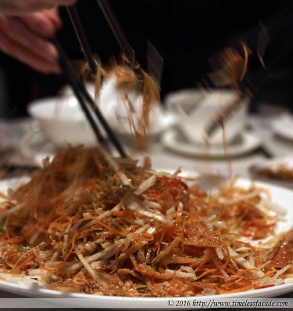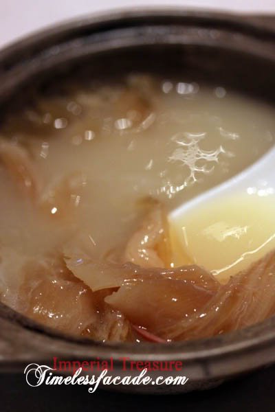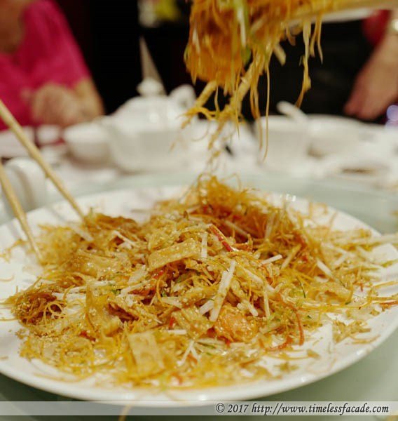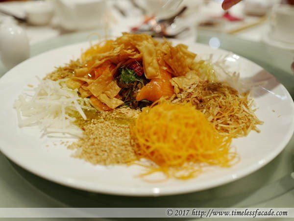 We decided to give Imperial Treasure Cantonese @ Crowne Plaza another shot for our reunion dinner even after a slip in standards during the same occasion last year (even though subsequent post CNY visits turned out fine).  Fatt Choy Salmon Fish Yu Sheng Amidst the rise of fancifully premium and aesthetically pleasing versions of yusheng, Imperial Treasure still manages to hold its own with a simple yet delicious rendition. Not cloyingly sweet with a dash of Kaffir leaves for a more balanced flavour; finished with crispy, fresh tasting crackers. Still one of the best yusheng I've had in recent years. Double Boiled Superior Shark's Fin with Chicken Flavourful without coming across as too rich; filmsy strands of gelatin shark's fin coupled with a chunk of chicken meat for texture. Good to the last drop and a great kick off to our meal. Sauteed Canadian Empress Clam with Vegetable & XO Sauce I'm no fan of celery nor Empress clams but this was very palatable, to me at least. Crunchy clam pieces permeated with a savoury, lightly spicy kick. Baked Boston Lobster An addition ($168++) to our CNY set menu, the lobster (1.2kg) was absolutely delish. Huge crunchy pieces of lobster chock full of crustecean sweetness and savouriness from the garlic sauce. Excellent but I'm not quite sure the price was justified. Deep Fried Soon Hock Fish with Soya Sauce Crisp skin belying the fine flesh on the inside; sitting on a bed of soya sauce. Pretty good. Fatt Choy Mushroom and Sea Cucumber Again, I'm no fan of sea cucumber and I actually try to avoid it. Perhaps its psychological. At least there was cabbage and mushroom. Diced Pork With Fried Garlic Pork cubes that looked like beef cubes. Bite sized pieces with an appropriate amount of fat for that sleek texture. Sprinkled with generous slices of crisp, fried garlic chips. Delicious but the old adage holds true; less is more. Fried Glutinous Rice with Wax Meat & Sausage By the time this dish rolled around, we were almost ready to call it quits. But we soldiered on and on hindsight, I'm glad we did. The rice was fragrant, a tad chewy but could do with alot more of my beloved lup cheong. Steamed Glutinous Rice Cake I still prefer the pan fried version but this version was strangely reminiscent of Kuih Kosui (卡穗糕). Red Bean Cream with Lotus Seed and Glutinous Rice Dumpling Azuki bean coupled with lotus seed and glutinous rice dumpling (汤圆) filled with black sesame; a deliciously sweet ending to our meal! Bill And the damage? In excess of one grand ($1155) for the 6 of us. It was a great meal and although Imperial Treasure's CNY menu stays pretty much the same year after year, food quality is largely consistent throughout and that's what matters in my humble opinion.Ambience: 6.5/10 (didn't manage to get a private room this year)Service: 7/10Food: 7.5/10Value for money: 7/10Overall: 7/10Address: #01-02 Crowne Plaza Hotel, 75 Airport BoulevardContact: 6822 8228Opening Hours:Monday to FridayLunch: 11.30am to 3.00pmDinner: 6.00pm to 10.30pmSaturdayLunch: 11.00am to 3.00pmDinner: 6.00pm to 10.30pmSundayLunch: 10.30am to 3.00pmDinner: 6.00pm to 10.30pmWebsite: http://www.imperialtreasure.com/…查看更多