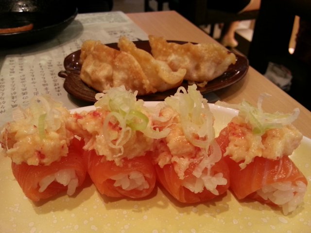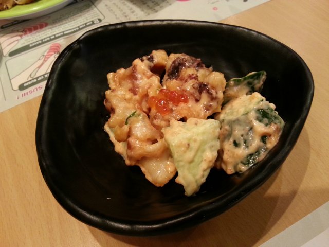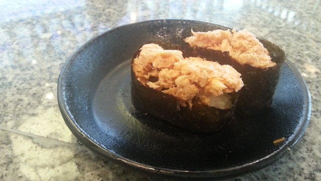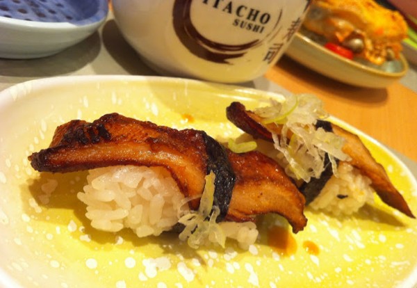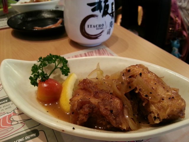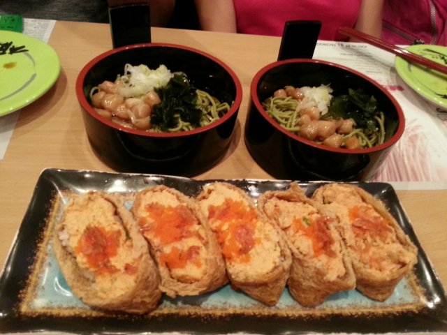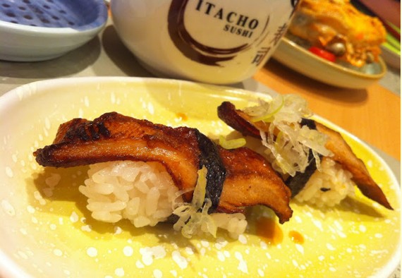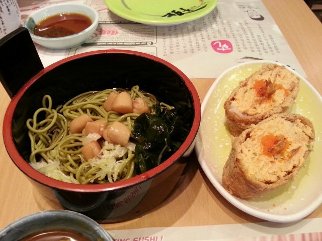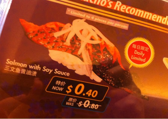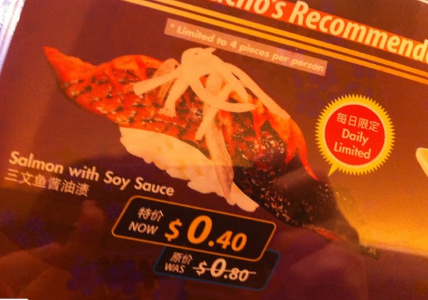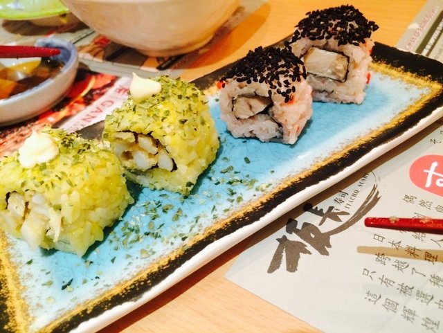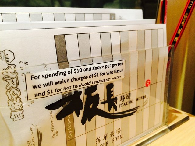 For those of you who like cheap sushi like sushi express and nihon mura but are sick of the selections that they have, you can try Itacho Sushi. You can spend about $10 a person, if you know how to order the cheap stuff.Here's what greets you as you take your sit.FYI : they charge $1 for wet tissue. So try and spend about $10/pax to get the $1 tissue charge waived. Look through the menu and write down on the paper what you would like, and call for a waitress. They will take the order sheet from you and deliver the sushi to you. The service at Plaza Singapura was pretty quick at 1130am on sunday. They had just opened at 11am and it took not more than 5 minutes for our order to arrive on our table, all pretty much at the same time. Except for the fried food items that took longer.Here are their really cheap sushi offerings. Starting at just 40cents!So what do you get for something so cheap?There we go.. for 40 cents each, which makes this plate just $2++. Dp note, you can only order one sushi per pax. For $3.80++ you get this one side of a salmon head w spicy sauce. It wasn't spicy at all, a slight tinge of sourness which complemented the tenderness of the fish. The head was complete with one eyeball. Not a bad dish to order for those who love fish heads. The Ikura handroll was a let down. The seaweed was mushy, not crispy and fresh. The handroll was dripping and strangely, it was warm. The eggs were okay, not extremely fresh either. Sushi teis' ikura handroll is so much better than this and at the same price too!Here is the spread with the salmon head, smoked duck croquette roll and deep Fried Inari w spicy salmon rice w caviar. We order 4 pieces at 60cents each. It was my favourite. It was very crispy on the outside and tasty on the inside. Imagine a very crispy wanton with like fish meat inside. Definitely worth a try. Although I realized the oil they used had a smell.. Not sure if it's because they haven't changed their oil often enough. Smoked Duck Croquette Roll, they were alot smaller than expected. About the size of a bigger fish ball. You could taste the smoked duck inside, and the potato was seasoned well. It was crispy and when dipped in the mayonaise mix they provided. It was a good appetizer.At the end of our meal, we asked the waitress if she could check if our bill had hit the $10 per pax, she said it was only $18+. So we decided to get two low priced sushi. At $1.20 per pair, the Teriyaki Chicken w red ginger rice and Deep fried squid w lemon flavour rice was a good dish to end off. The red ginger was strong but not too overpowering and you could taste the teriyaki chicken inside. For the deep fried squid, it was crunchy and yet chewy on the inside. The lemon flakes on the plate added a zesty and a slightly sour taste to the sushi. A very interesting mix of sushi. Again, very different from what you would get at Nihon Mura or Sushi Express and instead ofr $1.50. It is only $1.20So all in all, we spent $21.65 for two people, for quite a variety of items.…查看更多