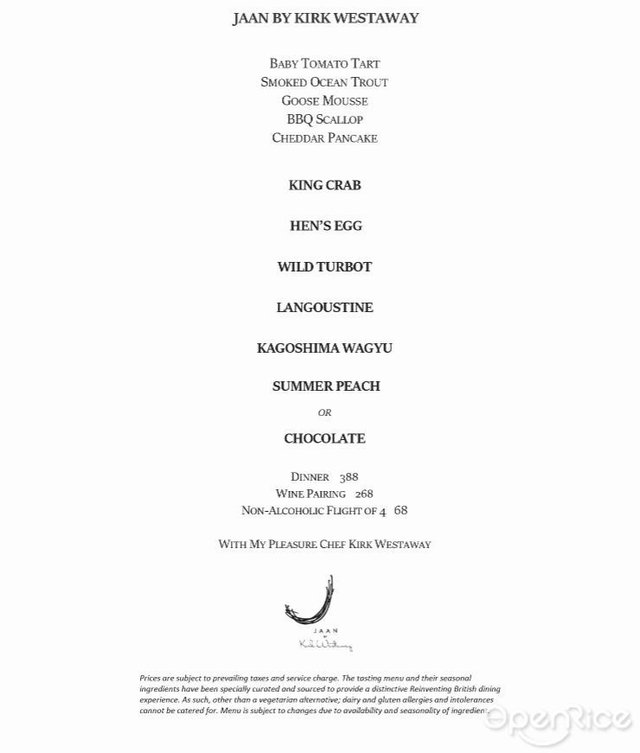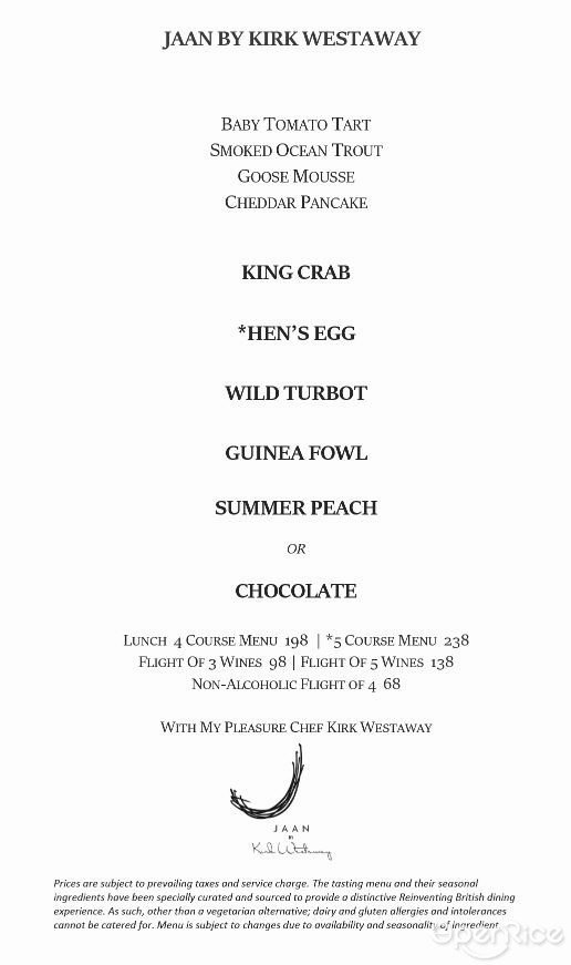 JAAN by Kirk Westaway (新加坡) 網址: https://s.openrice.com/eKbSB01rW8000 地址: The Stamford, 2 Stamford Road Swissôtel, Level 70, City Hall, Singapore 電話: +65 9199 9008