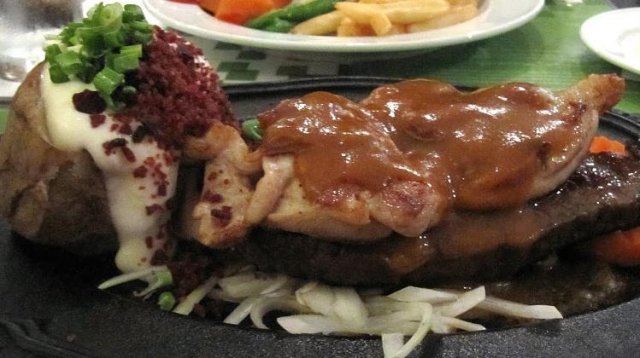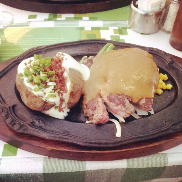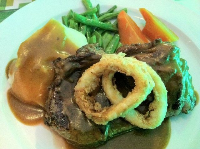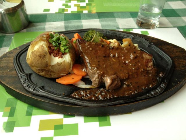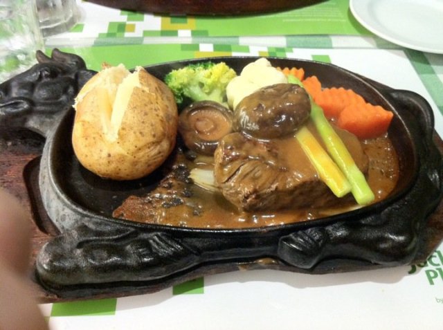 Jack's Place is a nice place for gathering or dating, the ambience of the cafe is great and comfortable. the whole restaurant are mostly in green, the menu, table cloth, etc etc. the waitress is very friendly and nice. I flipped through the menu and decided to have the beef tenderloin set with baked potato. i love my beef to be medium well, that all i can accept. The baked potato is very nice with the sour cream. the beef is tender and succulent.…查看更多