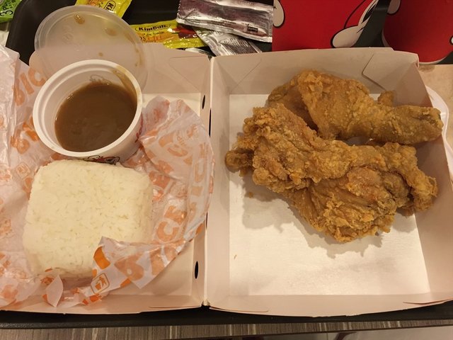 Jollibee is a well known fast food restaurant from Philippines. When the first outlet was opened in Singapore, it was then known for its super long queue. But now it has since expanded to Changi and now Novena, the queues are not as bad as it used to be.I happened to walk past the outlet at Novena. The queues only had about 6 customers in front. Maybe because it already 9pm, right the peak dinner time. The queue moved quite fast and the staff at the counter was friendly. I decided on the 3 pieces Chicken Joy meal which costs $9.50. It came with a drink and a side. For side there choices of plain rice, french fries, mashed potato and buttered corn. For drink, there was various choices such as Pepsi, 7-up, Mug and mountain dew.The chicken pieces were available in 2 flavours : original and spicy. I had selected the original. The chicken pieces were quite chunky and meaty.The fried chicken went quite well with the brown gravy sauce.…查看更多