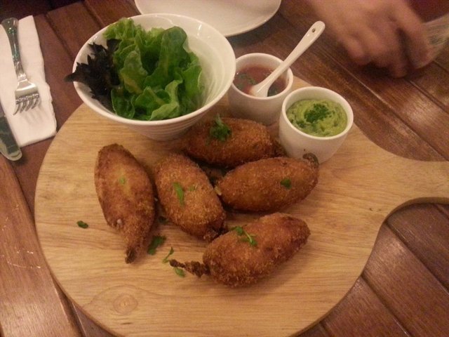 Just recently, during yet another team's dinner with D, YN and A, we very last minute headed down to J's Restaurant (discussion was all on Straits Cafe vs Badoque) for a pre-planned 'impromptu' dinner. I wanted to take a picture of the restaurant, but it was full house! Didn't want to snap pictures of innocent diners, so that's all I have of the restaurant interior. The restaurant is not exactly very small, yet not exactly very spacious so reservation in advance is really recommended. With a strong Latin-American influence, there's also an addition of a more refined modern European cuisine. J's menu not only caters for Vegetarians and also removed pork/lard and alcohol for Muslims. A great choice for gatherings with individuals of different dietary requirement! And now, let's get on with the food, shall we?Poppers - $17Breaded jalapeno peppers stuffed with mozzarella, fried till golden brown. Served with salsa sauce and guacamole sauce. I was hoping that I can get some spicy kick from this appetizer, but it was more of a sour shock instead. A little way too vinegary sour for my liking, though generously stuffed with cheese that was melted till molten in the process of frying till crispy golden brown.I didn't eat with much sauce, because out of the two I'll prefer the salsa sauce and I really need no more sourish tangy taste added to this poppers.Caution: The molten cheese are scalding hot. Bite into these poppers with care!Chipotle Meatballs - $17Brasied beef meatballs in spicy chipotle and tomato sauce, served with crispy corn tortilla chips.I can't comment on this, for I do not take beef. It did look delicious, though.Paella - $39 (for 2 servings)A traditional Saffron rice dish, with marinated chicken, salmon and tilapia.One of my favourite food, 'Spanish fried rice'. The rice was cooked till pretty hard, yet drenched in flavourful savoury moistness, and topped up with generous amount of chicken, salmon and tilapia. At just $39 for 2 pax, as compared to $28 for 1 pax, this is a definite steal!Fatijas (Chicken) - $29Grilled chicken breast with sauteed onions, capsicums, cabbage and mushroom, served with warm tortillas and an array of sauces.Of course, you don't expect grilled chicken breast to be juicy and tender. But they're still nothing short of being flavourful and tasty. Mushrooms seemed a little sparse as I hardly ate any, but they're obviously (as you can see from the picture) very generous with not just the chicken but also the onions and capsicums. I guess the correct way is to wrap the dish in the tortilla and eat it as a self made wrap with your preferred sauce(s), and so I did. I find that the meat itself is flavourful enough and there's really no need to add on any sauces to further complicate the taste.However, D was literally piling her serving plate with both the salsa and guacamole sauces. So I guess, to each it's own? :) Churros with Bananas & Mangoes - $12Churros, served with salted caramel bananas, fresh mangoes and coconut infused mascarpone sabayon.The churros are pretty well done, served piping hot right out of the fryer. The outside, dusted in icing sugar and drizzled with yummy chocolate, was crispy and the insides were soft, fluffy and slightly moist.However, I'm not feeling much for the jar of bananas, mangoes, coconut mascarpone cream though. It was way too creamy and heavy on the tastebuds, and I got pretty sick of it even before I could dig out the salted caramel bananas. Gave up on it after mouthful and mouthful of coconut mascarpone cream with bits of mangoes inside. :( Other than D, who tends to like richer, creamy and more flavourful food, none of us really like the jar of mascarpone sabayon.Would have enjoyed this dessert a lot more if it's served with a pot of rich chocolate dip instead!…查看更多