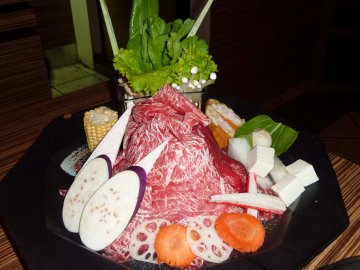 Hubby's birthday this year falls on a Monday. After work, we went to Ju Ju Hokkaido Hot Pot at PoMo formally known as Paradiz centre which most of us are familiar with) for dinner.I had the Fresh Pacific Ocean Platter steamboat.  It comes with a whole crab. Love the presentation!Hubby ordered the following beef set.  Presentation was very nice too.They have 3 types of soup base for us to choose, namely clear Kun-Bo soup, milk base and spicy. Juju serves a light broth using Japanese “kun-bu” (air-flown Japanese seaweed from Hokkaido), that doesn’t overpower food and focuses on the natural taste of the food. Both of us, on the safe side, we chose the Kun-Bo soup in our individual hot pot.The set meal comes with appetizer - Semi-Boiled Golden Egg with House Starters. I like the semi-boiled egg which goes really well with the sauce given.Ice Plum drink was served to us after the heavy meal. The staff told us that the drink was good for digestion. For dessert, both of us ordered "Pearl Harbor", nothing special, just some sago dessert.As usual, service here was very good and same as Tao's restaurant, their staff are always so friendly. Both restaurants were under the same group. They have a thid restaurant under their wing - Dozo (it is a more up-scale restaurant), maybe can try this next time