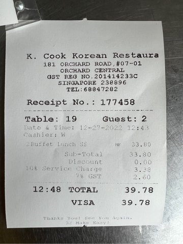 2 hours dining time, with 2 different types of buffet to choose from, normal $28.90++ or premium $49.90++ for weekend dinner.The premium consisted of about 4 different types of beef, 2 types of pork and tiger prawn. Al fresco or indoor dining is available but if you don’t want to smell like a bbq meat after your meal. You can choose to dine al fresco, but it is abit stuffy. Overall dining experience was good, a variety of marinated or non-marinated meats to choose from, prawns and squid. There is also cooked foods to choose from like noodles, tteokbokki, pancakes and more.…查看更多