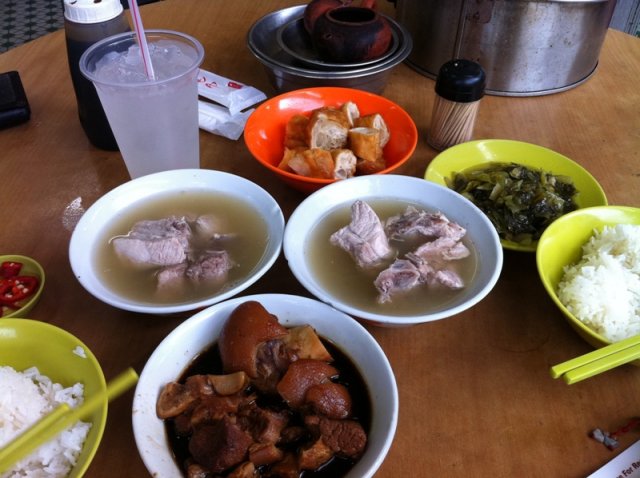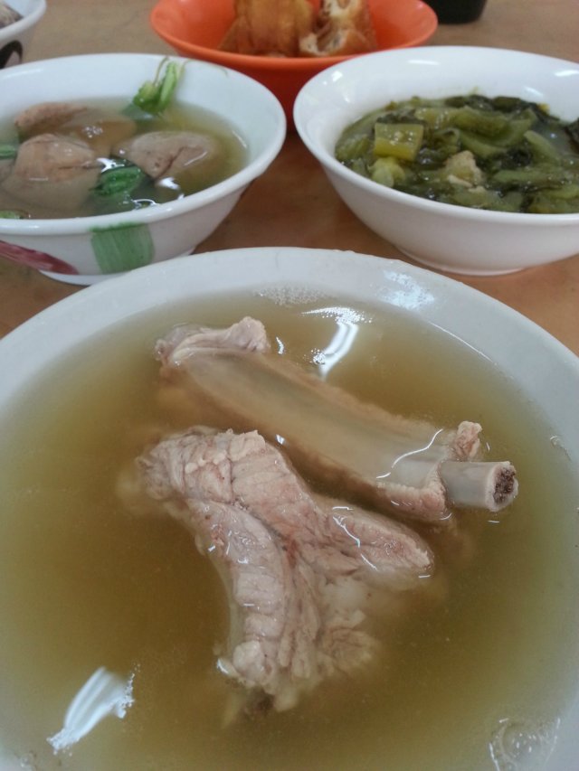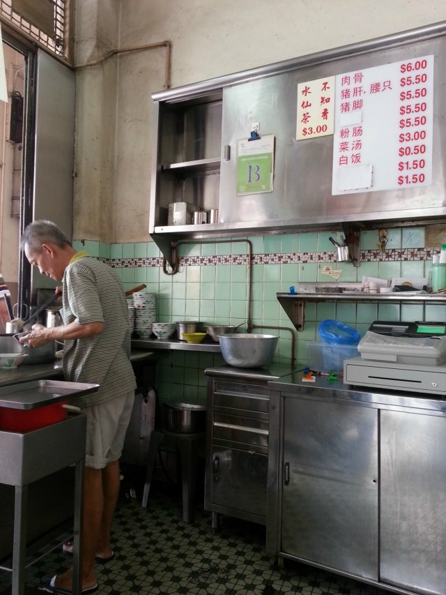 While I will not dare to proclaim that this is the best bak kut teh store in the whole stretch of Balestier Road, this is definitely one of my favourite. The bak kut teh broth here is the clear, peppery kind so if you are looking for the Ng Ah Sio kind (herby and dark in colour), look elsewhere. The pepper taste is not too overpowering but one sip reminds me of the pig's stomach soup my grandfather used to cook over firewood. The pepper has been cooked long enough to crack and seep into the soup along with the sweetness of the pork bones.At $7.50 a bowl with rice and fried youtiao, this is not the cheapest you can get. But as Japan Hour will like to say, "this is full of nostalgia". Remember to ask for a refill of the soup.The stall is open 24hours a day except on Sundays where they close from around 3pm to Monday 3pm.