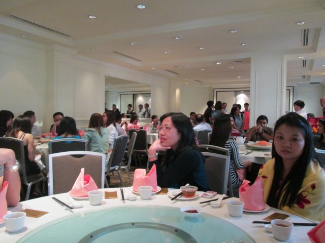 This year the company is having its annual Chinese New Year dinner at Kam Boat restaurant. As the dining group is quite big, we are assigned a private room at the six floor of hotel, next to the swimming pool. Prosperity Salmon Raw FishWe start the meal with the tossing of the raw fish salad, which is quite a common dish during the chinese new year season. It tastes light and tangy.Next comes the soup, which we are served Mini Buddha Jump Over The Wall each. The soup is very flavourful, which some of us ask if there is a second helping. The big mushroom is the soup is quite juicy.For vegetable dish, we have Pan-Fried Scallop & Prawns Ball in Salted Egg Yolk with Broccoli. The vegetables are very soft and lack of crunchiness. Next we are served Steamed Soon Hock Fish in Light Soya Sauce. The fish tastes quite fresh and big too.This is follows with the Crispy Roasted Chicken with Sliced Almond. Expecting a whole roasted chicken, I am surprise to find sliced chicken covered with crispy almond slices. It tastes crispy and crunchy.For the noodle, we have Wok-Fried Mee Sua in Teochew Style. The noodle is well fried and very tasty.We end the meal with Sweetened "Cheng Teng" and New Year "Nian Gao". The nian gao is sandwiched between 2 slices of sweet potato and deep fried. A great combination of the soft and sweet nian gao, balances off by the crunchy sweet potato. Makes one want to have another piece.Overall the food is great, but service is a bit uneven could be due to the fact that we are a large crowd.…查看更多