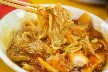 Keng Heng Teochew (Whampoa) Lor Mee is managed by an old couple, the stall was featured by Mediacorp “Our Makan Places: Lost & Found” recently and that triggered our tastebuds to explore the Teochew Lor Mee.We ordered the $3 serving.If you are not a friend of Chilli, you may like to request no Chilli or less chilli, the homemade Sambal Balachan chili has the power to tickle your tongue.The toppings came with slices of braised pork, fried fish skin, fried dumpling skin, Wu Xiang and fish cake. Noodle was a mixture of yellow noodle and white bee hoon.The gravy was light in color if not the added black vinegar, slightly less gooey if compared to many other lor mee. First mouthful was an immediate affirmative response from its excellent taste; the gravy was smooth and extremely tantalizing with its perfect seasoning and stunning flavour.The noodles were fully absorbed the essence of the gravy, together with sambal chili, cut chili, black vinegar, diced garlic and chopped spring onion that further accentuated the flavour and making it one of the most coveted lor mee in Singapore.Please refer to www.ieatandeat.com for details review.…查看更多