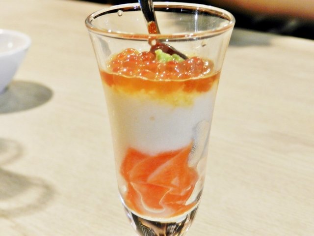 Full Kinsa Sushi review here: http://ivanteh-runningman.blogspot.sg/2015/05/kinsa-sushi-tasting-session.htmlFounded in May 2012, the owners behinds Kinsa Sushi shared a passion for the cuisine of Japan, and wanted to offer a premium Japanese dining experience, without the exorbitant price tag. Formerly located in Jubliee Square in Ang Mo Kio, Kinsa Sushi has since shifted its operation in May 2015 to a new outlet in the quaint HillV2 shopping mall, located in the Bukit Gombak area.Ambience at Kinsa Sushi is classical Japanese guest house, with wooden-esque decor and furniture. There is a minimalist approach here, the walls are mostly bare, with small focal points adorned with Japanese items such as fans. The main showpiece is the Magnetized Conveyor Belt for sushi plates, a new technology that is more visually appealing than the older metal conveyor belts due to coloured lighting, as well as being easier to clean.Service at Kinsa Sushi is down-to-earth casual, but efficient. Staff are friendly, seating guests quickly, and also quick to clear away empty / dirty plates and tables. They're able to offer basic recommendations from the menu, but may not always be able to describe the creation of dishes.Food at Kinsa Sushi is traditional, classic Japanese, prepared with fresh, good quality ingredients. Fresh seafood is imported from Japan, and delivered to Kinsa Sushi 3 - 4 times weekly. Individual portions are nicely sized and sufficient, although many dishes on the menu are designed for sharing. Recommended to visit Kinsa Sushi in groups! Prices here are described as 'heartland', and are affordable, comparable to a typical cafe, although the standards here are definitely restaurant worthy. Budget about SGD $28 per person for a meal.Despite the modern cocktail glass presentation of the Shake Ikura Yamakake / Salmon And Roe With Japanese Yam (SGD $6.90), this cold appetizer retains the traditional Japanese spirit with the use of Yamakase. The slippery texture of the yam gravy pairs well with the smoothness of the fresh salmon slices, while the taste complements the salty, briny, burst of flavour from the fresh salmon roe. A unique dish, with an acquired taste, worth trying!Freshness is the key component of the Kaki Ponzu / Oyster With Ponzu Sauce (SGD $7.90). This cold appetizer has a lovely, tangy yuzu vinegar / ponzu sauce, freshened with spring onions, and a fresh, plump, meaty oyster. Utterly refreshing and clean, very satisfiying, I downed it in 1 mouthful!The signature Wagyu Don / Wagyu Beef Rice Bowl (SGD $24.80), from the regular menu, is a house special, and is not to be missed! Unbelievably tasty, they've used a high quality, grade A4 Wagyu beef from Kagoshima, serving 60g of these divine, pan-fried medium-thick slices in a rice bowl, alongside a perfectly wobbly tamago egg, garnished with umami sauce and spring onions. Highly recommended!…查看更多
