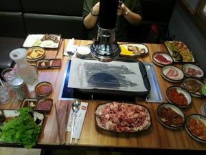 Have a gathering with my ex-colleagues in this Korean barbequed restaurant in Ang Mo Kio. Before enter into the restaurant, I was already attracted by the cute little brick house decoration outside here.When we entered, the restaurant staffs are very pleasant and friendly. We have ordered some pork and pork belly for barberque and also a big bowl of ginseng chicken to share. Ginseng chicken was very flavourful and the chicken meat is very tender and juicy. The conditiments are fresh, especially the broad greenish cabbage. As for the pork belly, they are sliced very thinly and really fresh and chewy. When after barberqued, you can really taste the wonderful flavour of the pork, especially the crispy pork skin. A pleasant meal as the restaurant is also quite cooling and spacious. Paid in total $55 for our bill, value for money.…查看更多