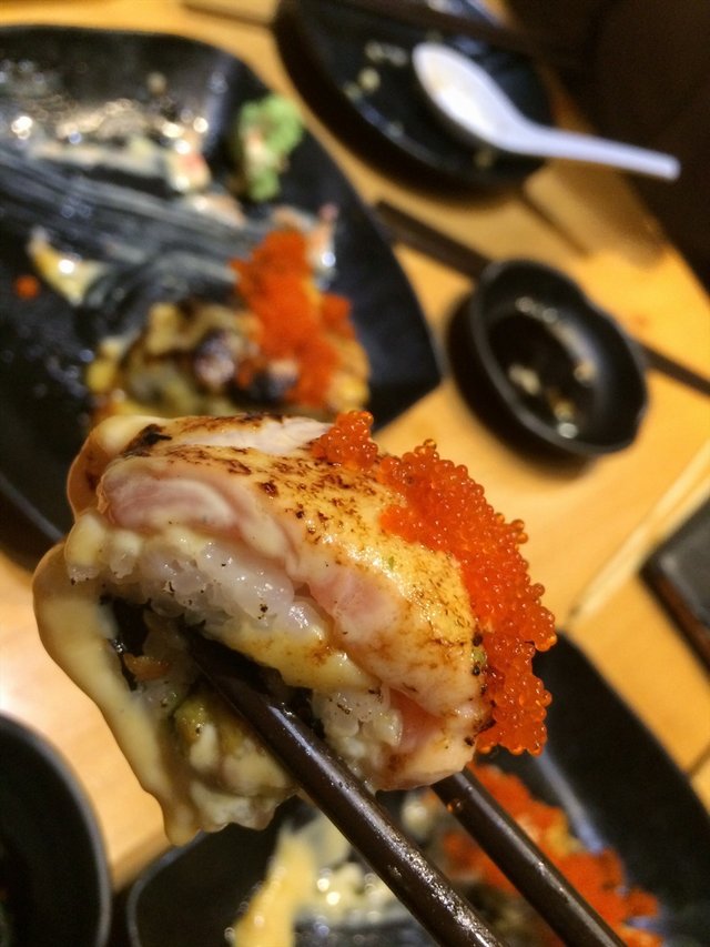 Koh Grill & Sushi Bar located at level 4 of Wisma Atria Shopping Centre, next to Food Republic Food Court probably needs no introduction. It's Shiok!!! Maki has been highly raved about on the social media. This sushi bar can get very crowded during peak periods and it is advisable to make reservations during these periods. I have heard so much about Koh Grill & Sushi Bar for quite a few years but had not have the chance to visit although it is centrally located; near ION Orchard. After much procrastination, we made reservations and proceed to visit during lunch on a weekday. I was surprised that there was no queue. Pitan Tofu $4The Pitan (Century Egg) Tofu $4; chilled tofu served with homemade paste was unique. Pitan Tofu $4The paste had a very strong unique century egg flavour. It provided a strong taste to the bland tofu. In addition, the tobiko (roe) provided a distinct crunchy texture of the soft tofu. I quite like the taste of this dish. Do note if you are not a fan of century egg, you are likely to dislike this dish as the flavour of the century egg is overwhelming. Aspara Buta Maki $3The Aspara Buta Maki $3 was essentially charcoal grilled Asparagus Pork Belly Roll.Aspara Buta Maki $3Although it was slightly charrred on the other side, I liked the fact that the asparagus retained its crunchiness providing a different texture. In addition, it had a smoky flavour. Shiok!!! Maki $16.80We ordered the highly raved about signature Shiok!!! Maki $16.80 sushi. Its photo appears in nearly 80% of all photos in Instagram and Facebook tagged with the name of this restaurant. Priced at $16.80, the Shiok!!! Maki was not cheap. It comprised of a combination of charcoal grilled eel, avocado, sushi rice wrapped with lightly roasted salmon and topped with cheesy mayonnaise and generous serving of tobiko (roe). Shiok!!! Maki $16.80After trying a piece of Shiok!!! Maki, I was won over. The combination of taste and texture was heavenly. It was hard to stop at one. Now I know why this had been widely raved about. Its never too late! Sukiyaki Beef with Ramen $16The Sukiyaki Beef with Ramen $16 consisted of a mixture of assorted vegetables, tofu, beef and ramen in broth. Sukiyaki Beef with Ramen $16This was easily the worst dish. Nothing fantastic and it did not appeal to us. The other 3 dishes were just too outstanding. It did not help that the homemade broth was on the salty end. Overall, the food was decent. I liked three out of the four dishes ordered. Mainly, because we did our research before coming (it was not hard, there are so many reviews on this place). We will be back for more! http://foodiefc.blogspot.sg/2014/04/koh-grill-sushi-bar-wisma-atria.html…查看更多