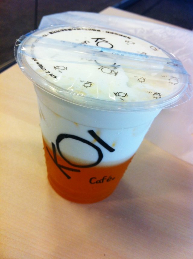 This is one of the new creations that Koi introduced - among the new flavours are mango, peach and passionfruit macchiato priced at $3.20 for the medium cup. I tried the peach flavoured one and liked it - peach flavour was strong and distinct, and blended well with tea and the gong cha milk which was topped but better when stirred and mixed with the drink. I added 50% sugar but was quite sweet, so would recommend a lower sugar level.…查看更多