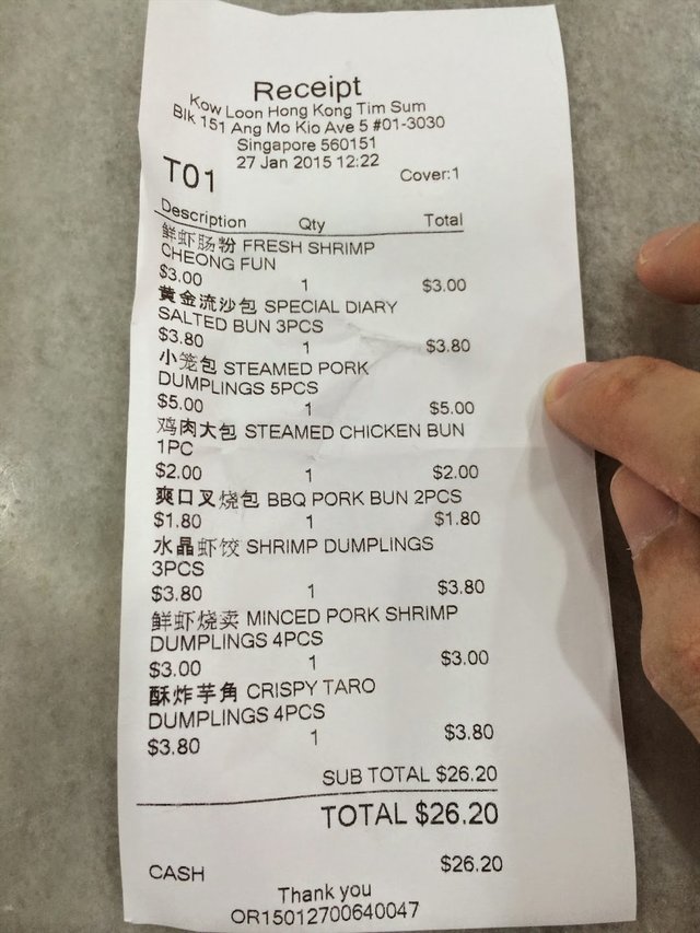 Kow Loon Hong Kong Tim Sum (新加坡) 網址: https://s.openrice.com/eKbSB01T1q100 地址: Blk 151 Ang Mo Kio Ave 5 #01-3030, Ang Mo Kio, Singapore 電話: +65 9685 9371