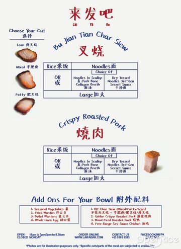 叉燒雲吞麵 / 叉燒燒肉飯 / 蝦餃湯 / 蝦醬雞 / 豆腐泡