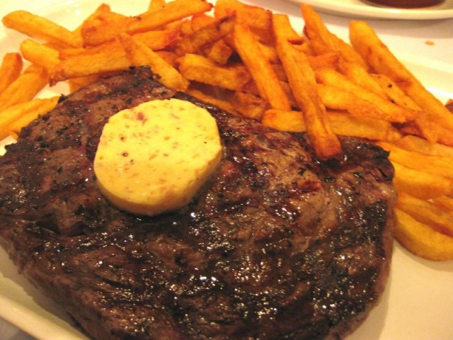 Whenever I have a steak craving, the first place that comes to mind will be Les Bouchons at Ann Siang that serves up some of the best steak frites in Singapore at reasonable prices.Les Bouchons looks like your typical French bistro in a colour scheme of black, red and white. Dim warm lighting gives this small, yet classy restaurant a cosy and intimate ambience. Guests are simply unwinding after a long day, sipping wine and appreciating some fine cuisine. That’s exactly what draws me to here. Away from the hustle and bustle. No frills, no fuss. Just enjoy the food and wine.Complimentary bread rolls are served warm with butter. The inside may be moist and soft but the crust is a little hard. Anyway, it is advisable not to eat too much bread as you should reserve space for what’s to come.I can never resist smoked salmon. Just squeeze the lemon wedge over the salmon to give it that acidic punch. It really whets your appetite. The salmon is beautifully smoked and goes really well with the crispy toast.And what is French cuisine without the escargots? I just love the generous sprinkling of flat leaf parsley on top. The aromatic scent balances the mildly sharp, pungent flavour of the garlic. Each piece of the snail is perfectly cooked, tender with very little chewiness. Dip each morsel in the fragrant buttery sauce, it’s just heavenly. The bread basket is perfect for this dish. Pinch an end off a bread roll and allow it to soak up the herbaceous garlic butter, absolutely delicious!This is what I have ordered. Their signature rib eye steak with vigneron butter and unlimited servings of homemade fries. This is really a hefty piece of meat! And the fries are just so addictive and because they are twice fried in duck fat, they are really crispy on the outside and soft, tender on the inside. These are what I call FRENCH fries!For full review and pictures, please visit http://springtomorrow.com/2013/12/08/hearty-steak-frites-les-bouchons-ann-siang-road/…查看更多