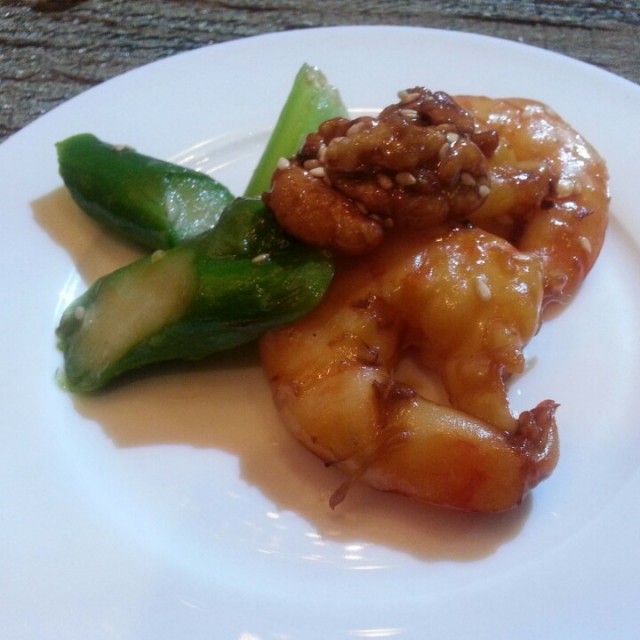 Sauteed prawns with caramrlized walnuts