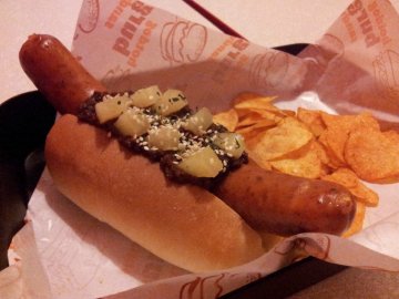 Lil Papa's is about a 5-10 minute walk from Tanjong Pagar MRT station. It's tucked away in a corner of Block 7, Tanjong Pagar Plaza and yeah, it's pretty cosy!The selection of all sorts of rare beer was what caught my attention at first. Seriously wish I could try them all! Settled for the Toffee Apple Cider in the end. It was really sweet - exactly how I like my alcohol!As for the hotdogs, there were many kinds to choose from, but I ordered the Sambal Sin Wiener in the end. With the spicy Italian sausage I chose, plus the super-shiok-darn-spicy sambal sauce and small chunks of pineapple, it was a chilli combo that was simply unbeatable. Absolutely delish!