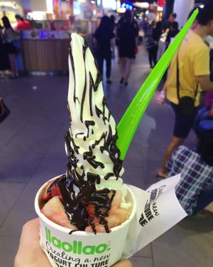 It was my fourth time eating Llaollao. And fml, I just knew that Llaollao should be pronounced as 'yao-yao' instead of 'lao-lao'...It was a Saturday afternoon at 1pm, it was the first weekend in 2015, and surprisingly, the queue was short! We didn't see the queue that extended until the lift next to Yoshinoya that we used to see in 2014. Guess what, after we started queue-ing, the number of people queue-ing behind us started growing. We brought good luck, this was what we shamelessly called ourselves.Sanum - $6.50It's predictable that I always order Sanum every time I visit Llaollao, told you that once I begin to like a particular thing, high chance that I will repeat the order. This time, our Sanum contained chocolate muesli crunch and candy milk drizzle, and for the 3 choices of fruit I let bf decide, and he chose blueberry, strawberry and pomegranate. The yogurt as usual, nothing to complain about, it was perfect! But bf said my choice of crunch and sauce would bring him diabetes, coz it was cloyingly sweet haha. I was okay with it though. I like the candy milk drizzle and complemented the yogurt really well. It was my first time eating fresh pomegranate, it tasted unique with edible seed inside.Overall, Llaollao's Sanum is heavenly delicious, it's become my serious addiction. You gotta order this at Llaollao, I think it's more worth it than having normal cup of froyo (but then, you decide). I don't mind the queue coz at the end it's all paid off. I'm really jealous of SP and NTU students who have their own Llaollao stall at their school canteen hais... I swear if Llaollao opens at my school I WILL BE THE FIRST ONE TO QUEUE!…查看更多