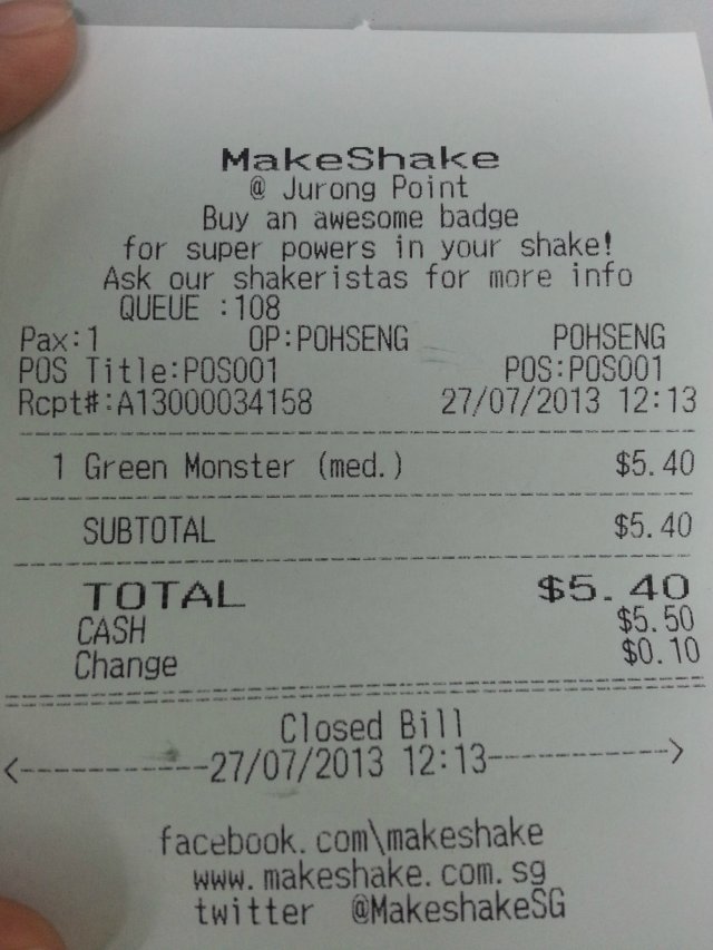 MakeShake (新加坡) 網址: https://s.openrice.com/eKbSB012Dy000 地址: Jurong Point, 1 Jurong West Central 2 #02-K3 (JP1), Jurong West, Singapore 電話: +65 6794 5458