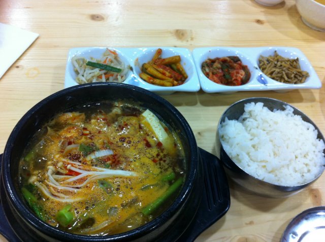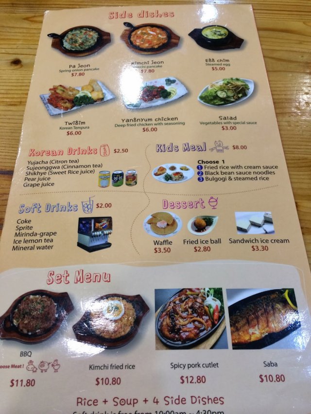 This place seemed to be run by Korean owners, however, the food didn't taste like it. The portions are small, with each dish costing around $10-15 on average. While this is cheap for Korean food in Singapore, I have tasted far better at a similar price. However, the service was pretty quick, and our food came out within 10 minutes of ordering. Now the food:First of all, the complimentary kimchi was quite flavourless and mushy. This was also evident in the kimchi jiggae, which seemed to rely on its spiciness to mask the fact that their was a lack in kimchi flavour. The pork used tasted like canned pork, and there was such a lack in vegetables and glass noodles, it ought to have been marketed as a soup, rather than stew. The $10 portion of bulgogi without glass noodles is quite small, what I would consider to be half the size of a regular plate of bulgogi elsewhere. To make it quick, it was a small plate of cheap meat that lacked the signature bulgogi flavour. All in all, I would not recommend this place. …查看更多