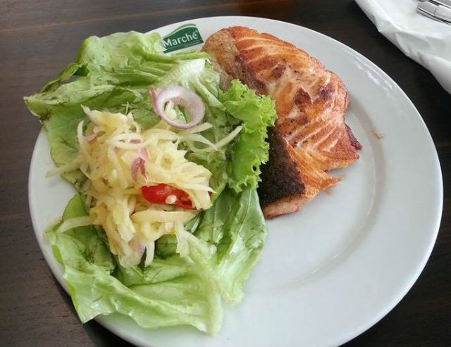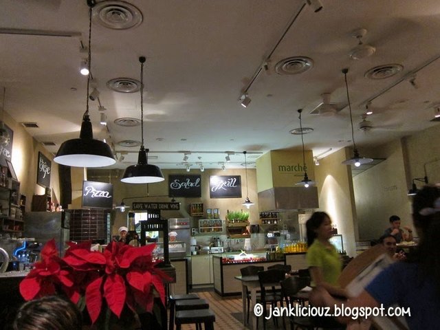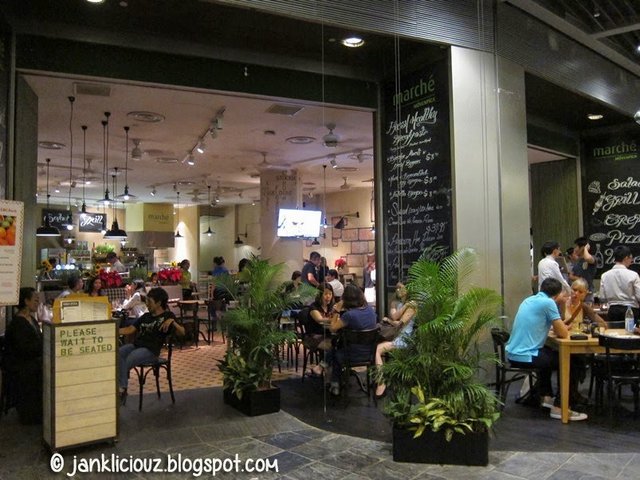 I dropped by Marche Movenpick for a quick dinner after visiting the Bank Art Fair at Pan Pacific Hotel nearby. Just to sidetrack, the art fair was very cool, and I got to see alot of interesting works! Most are very thought inspiring, and some with very deep roots in culture. :) Now, back to the review for Marche Movenpick. Ta-dah! Here we are! This is the best shot I could get of the restrobar, unfortunately, you'll have to keep your eyes open as their signboard is nowhere obvious to be found.Marché Mövenpick is the urban, innovative concept von Marché International, the leading gastronomy company for highest quality gastronomy ideas at highly-frequented and carefully selected city center locations. With its worldwide brand names Marché® Restaurants, Marché®Natural Bakery, Mövenpick Restaurants, Cindy’s Diner and, added only recently, Marché Mövenpick Restaurants, the company offers a complementary and premium quality total offering at highway rest stops, airports, train stations and other selected city locations.Surroundings: "Save water, drink wine." Cute! Condiments are placed out on the table for easy use.With the positioning of itself as a restrobar, you would assume that its drinks would be up to par. Both my friend and I ordered one of my favourite drinks - the Mojito ($13.90) - which was served to us too bland. There were too much mint leaves in the drink, no hint of lime and diluted rum. There seemed to be some problem with the concoction as I gave some feedback to the waitress, who got it changed for me. When it came back to us, the drink was too strong, there was too much rum. I gave up trying and just completed the rest of the meal with warm water instead. At least for me and my friend, we both felt the same about the mojito, which leaves much to be desired.And then the food came.We had the roasted beef savoury crepe ($16.50). In it was roasted capsicum spread and roasted beef chunks. My friend didn't really like the beef as she kept chomping down on beef chunks with thick tendons. I didn't really have the problem though, so I shall not comment on that! But I did like the taste of the beef chunks with the crepe. It is not as savoury as I would like, but just nice for most people. Served with some salad. The view of within.Next up, we had the smoked duck breast gourmet pizza ($22.90). Although their specialty was the white pizza, I didn't order that as I was craving for smoked duck pizza, actually. haha!I was told that the difference between the gourmet pizza and the white pizza is that one's savoury, and the other's sweeter. I believe it also has to do the condiments and seasonings used. Well, I will return for the white pizza another time, because I did love their smoked duck pizza!It's a 12-inch pizza, standard serving! In fact, it's the only serving they have. It was filled with hoisin sauce, spring onions, red chilli, sliced tomatoes and topped with celery. I loved the thin crust, and the duck breast with hoisin sauce was really well done.When I tear out the pizza, it's close to having no cheese trail. So neat! It's not too overloaded with cheese.Delicious toppings~Seriously, both of us weren't able to finish the pizza, so I had half of it taken away. The next day, I heated it up for breakfast, and it was still super nice! (Yay!)Now, DESSERT. Under recommendation, I tried the Crepe Suzette ($12.90), which uses sliced oranges cooked with liqueur, put over a scoop of Movenpick Vanilla icecream and thin crepe. I would have been super pleasantly surprised if it were served with flambé, but it wasn't. hahaha.Their crepes remain well done. And although the mixture of the crepe suzette had followed the cookbooks, but it wasn't anything to shout about. I did like the Movenpick vanilla ice cream. Although it wasn't overly impressive, but I did enjoy ending the meal with this dessert. Another thing for sure, I left knowing that their wait staff all had pretty good customer service standards. Kudos to the great service there, which helped save the performance of the poorly mixed Mojito.…查看更多