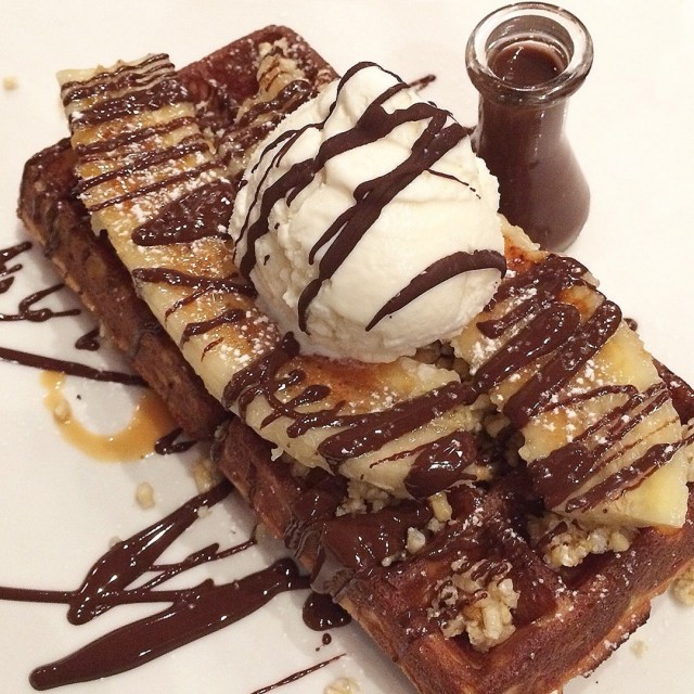 Max Brenner, an Israel-origin chocolatier, has been on my wishlist since long ago hoho. Yesterday it was 9pm and all restaurants in Marina Bay area (especially Esplanade) were overwhelmed by people! We decided to go for dessert. We had been on queue for approximately 15 minutes before our turn came. The line behind us was like crazy, until the security man came and spruced the line."Chocolate is not just about taste. It portrays different aspects of our lives: romance, sensuality, and decadence". This quote written on the menu book attracted me. The menu offered was various, made me get tempted to try all of them. It took some times to pick out our choice - we got stuck in confusion beyond their mouthwatering menus!Cookieshake - $9.90. Frozen chocolate frappe with white chocolate cream & Oreo cookies. Came in a super cute Alice cup, completed with stainless steel straw. All ingredients were smoothly blended. It was perfectly yummy, even at the first slurp. Man, I can forever sucking that drink...Milk Chocolate - $6.90. At first, the waiter had mistaken my order with Dark Chocolate, then he immediately changed it. Came in a Hug Mug, which was not less cuter than Alice cup. According to the menu, this drink was made using Venezuela chocolate, with hints of vanilla. It was creamy, the milk chocolate was rich in taste. However, the sweetness became too overpowering after a few sips. And here I'm thinking, I should have received that Dark Chocolate instead, haha.Chocolate Chunks Pizza (full) - $19.50. Double chocolate melting chunks pizza with a choice of topping: hazelnut bits, bananas, roasted marshmallows, or peanut butter. We chose bananas for topping. It was a quite huge round of pizza, with generous amount of chocolate spread and banana slices. The chocolate spread was heavenly sinful OMG I'm gonna die! Even I licked all that chocolate stains on my fork and plate lolol.All in all, Max Brenner's treats are delicious beyond words! Max Brenner's great passion for chocolate tells how sinful the chocolate is. Definitely something to die for. Surely will be back for more chocolatey treats (especially waffle and fondue)!…查看更多