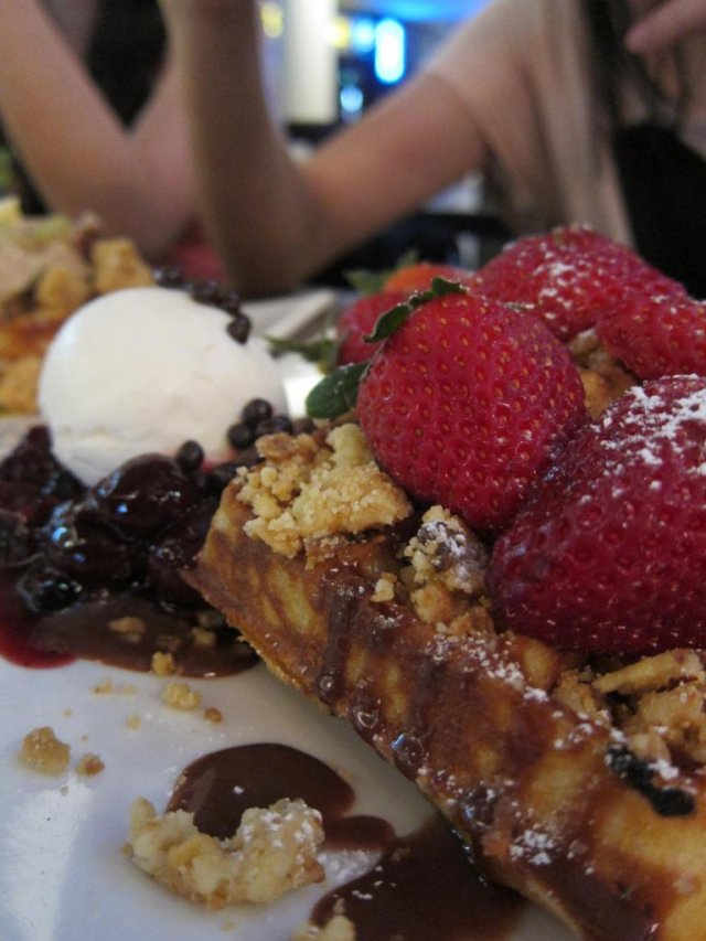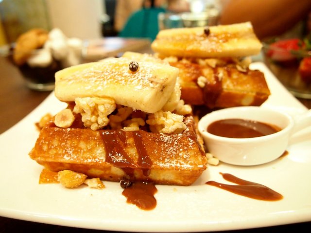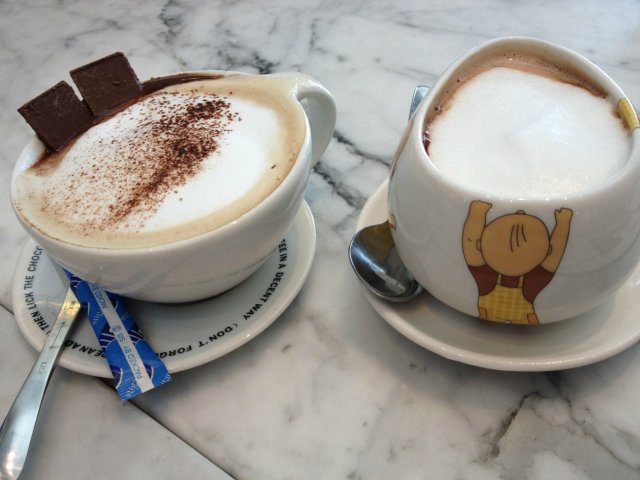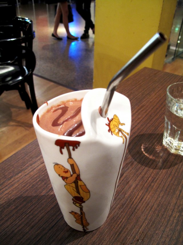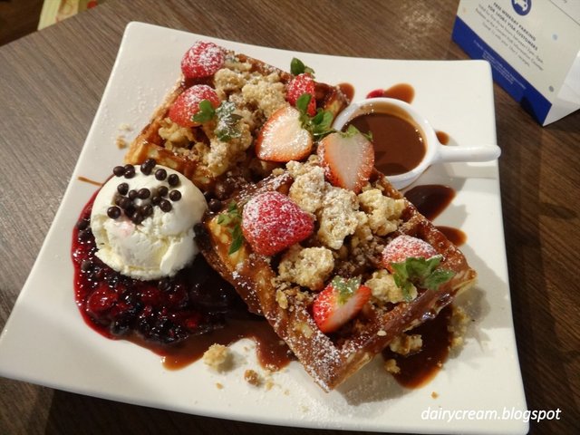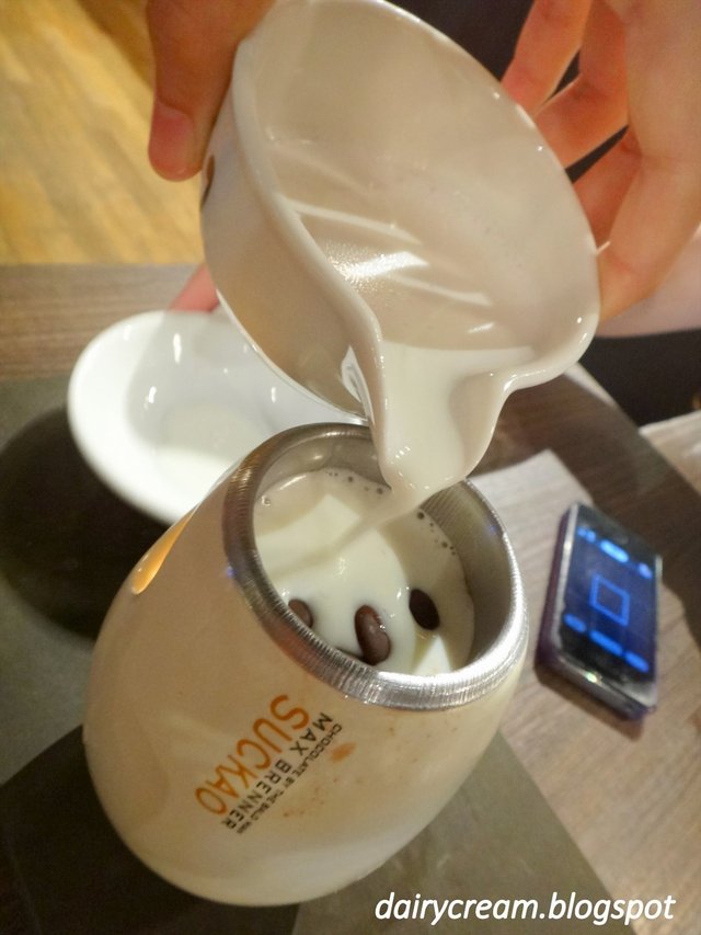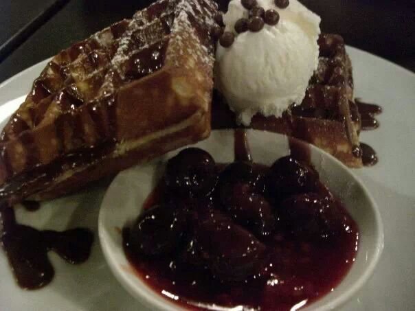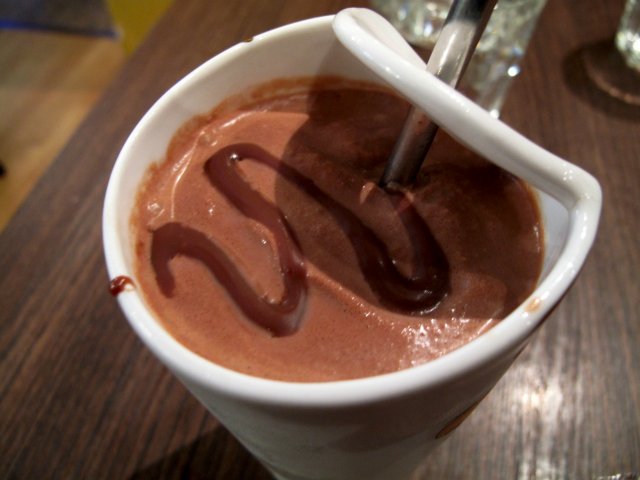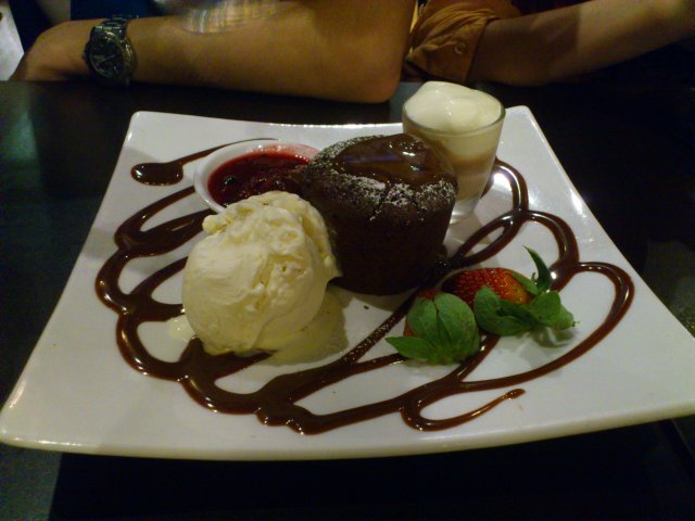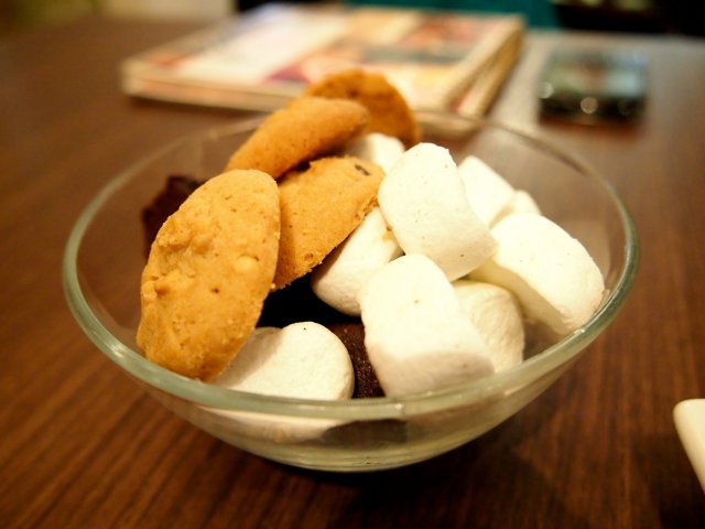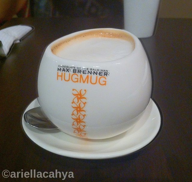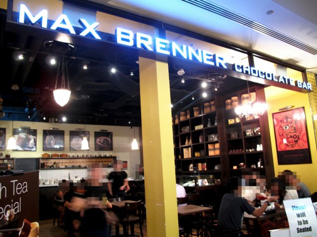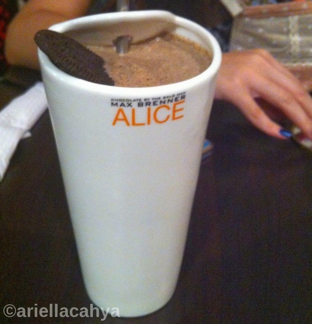 Max Brenner, an Israel-origin chocolatier, has been on my wishlist since long ago hoho. Yesterday it was 9pm and all restaurants in Marina Bay area (especially Esplanade) were overwhelmed by people! We decided to go for dessert. We had been on queue for approximately 15 minutes before our turn came. The line behind us was like crazy, until the security man came and spruced the line."Chocolate is not just about taste. It portrays different aspects of our lives: romance, sensuality, and decadence". This quote written on the menu book attracted me. The menu offered was various, made me get tempted to try all of them. It took some times to pick out our choice - we got stuck in confusion beyond their mouthwatering menus!Cookieshake - $9.90. Frozen chocolate frappe with white chocolate cream & Oreo cookies. Came in a super cute Alice cup, completed with stainless steel straw. All ingredients were smoothly blended. It was perfectly yummy, even at the first slurp. Man, I can forever sucking that drink...Milk Chocolate - $6.90. At first, the waiter had mistaken my order with Dark Chocolate, then he immediately changed it. Came in a Hug Mug, which was not less cuter than Alice cup. According to the menu, this drink was made using Venezuela chocolate, with hints of vanilla. It was creamy, the milk chocolate was rich in taste. However, the sweetness became too overpowering after a few sips. And here I'm thinking, I should have received that Dark Chocolate instead, haha.Chocolate Chunks Pizza (full) - $19.50. Double chocolate melting chunks pizza with a choice of topping: hazelnut bits, bananas, roasted marshmallows, or peanut butter. We chose bananas for topping. It was a quite huge round of pizza, with generous amount of chocolate spread and banana slices. The chocolate spread was heavenly sinful OMG I'm gonna die! Even I licked all that chocolate stains on my fork and plate lolol.All in all, Max Brenner's treats are delicious beyond words! Max Brenner's great passion for chocolate tells how sinful the chocolate is. Definitely something to die for. Surely will be back for more chocolatey treats (especially waffle and fondue)!…查看更多