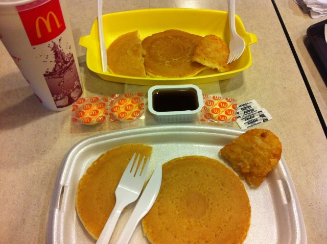 Hotcake after my examination with one of my friends. The ever so loving hotcake - hot and fluffy. Not too thick and wouldn't make one sick of it. Generous amount of honey syrup and taste really sweet. I literally deep my whole hotcake into it with a lot of margarine and I love it that way. Yes, unhealthy with the extra calories, but that's why I only eat one and a half to satisfy my taste bud but at the same time cutting calories from the hotcake itself :). Hashbrown - warm, a little bit crispy, soft on the inside. Love it! May be too expensive to order one of it owns but still, may be worth it once in a while XD. Try it with a little bit of ketchup, a little bit of butter a little bit of honey syrup and a little bit of black pepper. You won't regret it if you like it. If you don't like it, then treat it as an experience. Because I really love my hashbrown that way. Drinks? I ordered ice lemon tea if I remembered correctly. It does not taste good, at all. Like just lemon in pure plain water. Yes, oh, and a little bit of "tea" and "lemon" flavor and/or syrup :).Service - Some of the crew there are really good, some are really evil. Why so? Some smile and thank you. Some stares and give you the you-owe-me-thousands-dollar or why-am-I-serving-you looks.…查看更多
