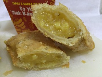 When I walked past the outlet the first week the Salted Egg Yolk Burger was out, I was met with a sold out poster. Finally it was available this time when I walked past the fast food outlet again.I ordered the set which cost $9.10. It came with the Salted Egg Yolk Chicken Burger, Twist & Shake Fries, Banana Pie and a regular coke.Salted Egg Yolk Chicken BurgerBreaded whole-muscle chicken topped with mouth-watering salted egg yolk flavoured sauce and finished with crunchy lettuce and fragrant curry leaves. All tucked between a black pepper and white sesame bun.I asked for extra sauce when placing the order. It came with no extra charge. When I unwrapped the package, it was messy of the thick sauce. The sauce was rich and thick but lacking of the salted egg yolk taste. Felt that there was too much custard powder in the sauce. The chicken patty was quite thin, when compared to McSpicy Burger.Twist & Shake FriesCrispy, golden curly fries dusted with tantalising salt and pepper crab flavoured shaker. Indulge in this new irresistible treat!The fries although not very crispy, were surprisingly tasty on its own, without the salt and pepper seasoning. It was better than the in house normal fries.Banana PieDelicious flaky crust filled with warm banana bits. It’s simply ‘sedap’!The pie was its usual crispy apple pie crust, filled with caramlised, melt in the mouth banana in it. It really tasted not bad.Salted Caramel Dip Cone ($1.20)The classic vanilla soft serve cone with its soft serve dipped in salted caramel sauce. The combination of the hard slightly caramelised crust with the cold milky soft serve was a great one.Overall not bad except for the burger. Guess it needed more time for R & D. By the way do not order the iced milo at this outlet. It looked normal but there was none of the Milo taste in it. Worse than plain water. The hot version was slightly better but still very weak in taste.…查看更多