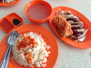 Walk past this stall and is always long queue. Decided to try it and to my surprise, it cheap and nice. Ordered a roast chicken meal plus Thai beancurd. Chicken is tender and rice is fragrant. The serving is well enough to fill the stomach and the beancurd is fried and add on with Thai chilli sauce with onion. Soup is normal just like the rest of the stall. Will come back to try their sesame chicken if the queue is not long.