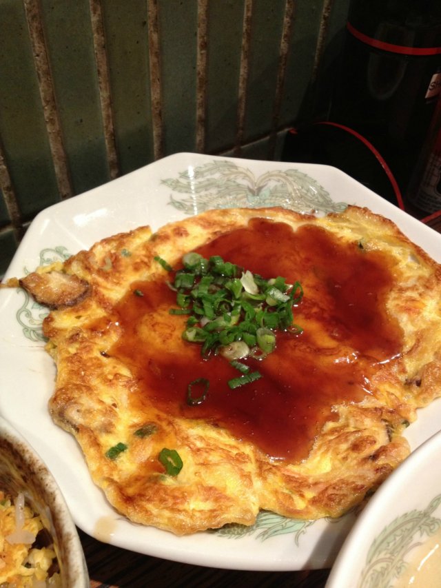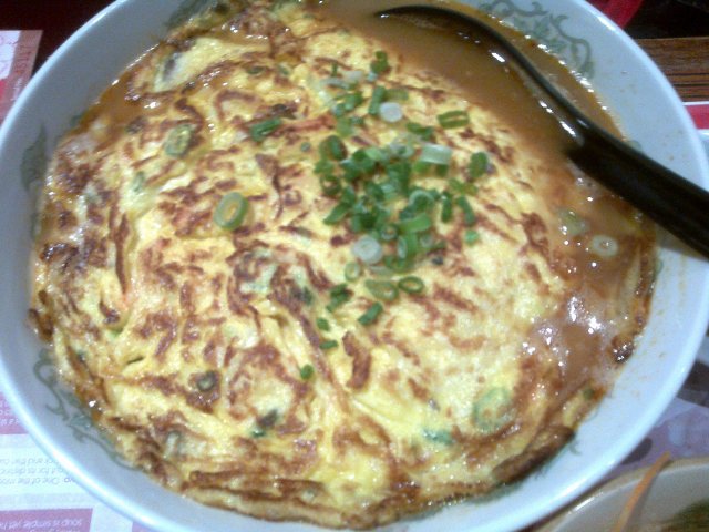 This is a really small and packed restaurant with a few tables and a counter seat. It was lunch period and the tables were all full except for the counter seats. We didn't mind the counter seats and so we headed in. I ordered a set menu which consist of a small bowl of roasted pork rice and ramen. In this set, we can have the best of both world because the servings were small. We ordered crabmeat and mushroom omelette and braised pork too. The braised pork - too busy eating that I forgot to take photo of it - was very delicious, the sauce was a little sweet and had a nice flavour. The omelette was done very well too. It was half-cooked and the teriyaki sauce spammed atop of it balance the flavours of it. Even though there wasn't a lot of crabmeat and mushrooms, I still like the egg because it is special. The rice was alright, nothing to rave about. The ramen was nice, I like the broth. It was light on the palate and not too oily. Noodles were springy too. 查看更多