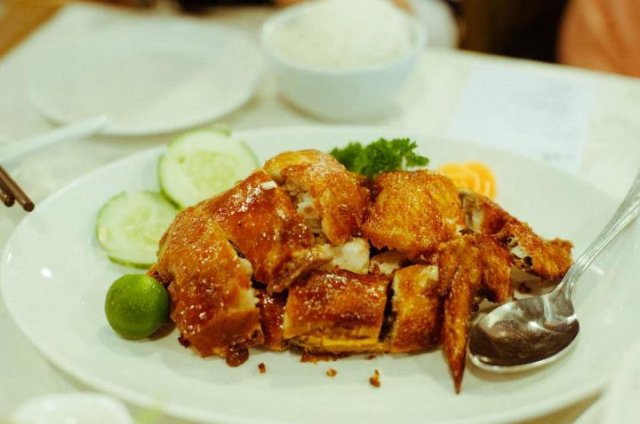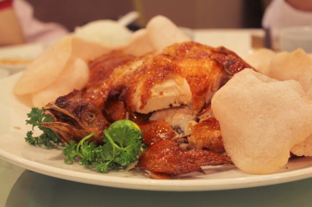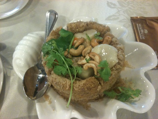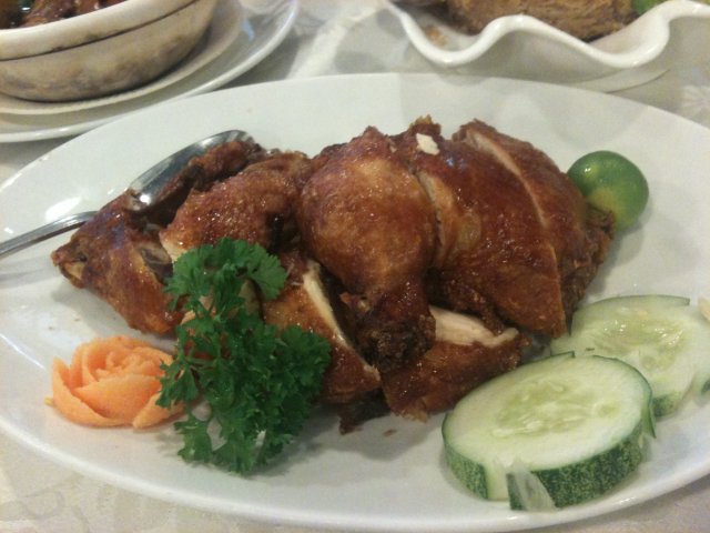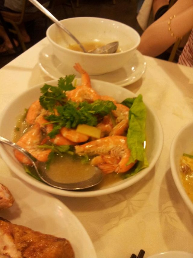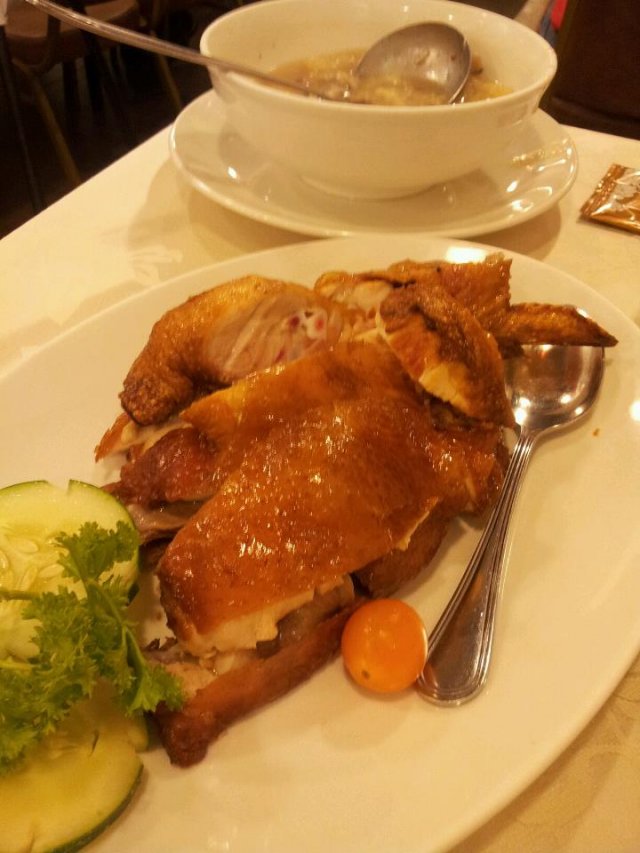 See my full reviews & photos at = http://chefquak.com/2015/12/01/good-dinner-chat-moi-lum-on-26nov2015/an RI friend organised november G20 dinner at moi lum 梅林 at maxwell road on 26.11.2015. ^^ we had 11pax.the last one we had here was almost 3 years ago on 16.1.2013.restaurant has several couplets on the wall, a bit of chinese tradition.restaurant was less than 1/2 full.the 8 treasures duck 八宝鸭 is their signature dish.i saw the leg was quite disproportionate, size like a goose leg. later i realized probably the stuffing caused it to look huge.must say this dish was really excellent!duck was tender & so very flavourful. this is for me a fine chinese dish. though it was not served as an individual dish, the preparation must be so fine & skillful & the flavour was exquisite. ^^the next dish, yam basket, was rather poor though.the yam has now fragrance 芋香.this is such a common almost ancient chinese restaurant & now zi char dish. quite surprising.made me recall what a good yam basket i had at ah orh according to my previous post, though i cannot really remember the taste now.my friend seems to be ordering all the birds here – duck & chicken.but this chicken was again excellent, probably their signature also.it came with sticky rice & other tasty stuffing, forgot to take photo.chicken was deboned. the server confirmed that. we were wondering how that was done. didn’t have the answer. :-)this was so different from the usual roast chicken, and also the very processed roast chicken with roast skin & minced meat made into a pancake (some restaurants called it 金龙鸡) which i don’t like.salted egg prawns were competent, ordinary.actually not that great, in my opinion.hk steamed flower garoupa came with a load of fried garlic.fish was very good, quite expected of a good chinese restaurant. the garlic gave it some differentiation.not a wow dish for me, unlike the 8 treasures duck 八宝鸭 & the chicken.the chives dish i guess was new for us, don’t recall having it previously, but not my favourite at all.a 3-egg spinach or a good fragrant garlic fried vegetable dish would do better for me.we had a fruit platter to share.& some red beans pancake also.dinner came to S$31pax nett for 7dishes include dessert. quite doable. the duck & chicken were beyond my expectations. fish was very good & the other dishes so-so. so overall i supposed quite good but a bit incomplete, not in terms of food quantity (we all had a wonderful meal) but in knowing what good dishes the restaurant serve.another way to look at it-having 2 outstanding dishes is better than having mostly above average dishes.we all had good chats & a wonderful time together.…查看更多