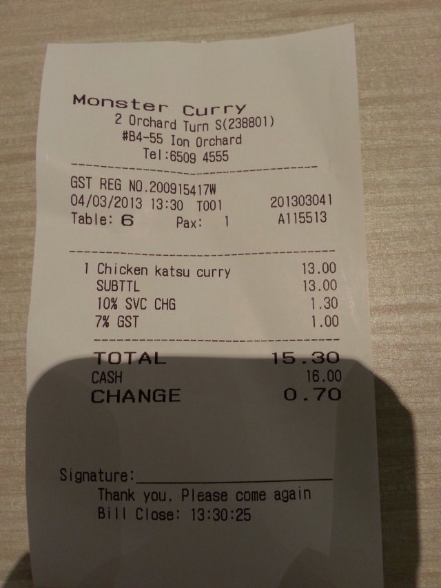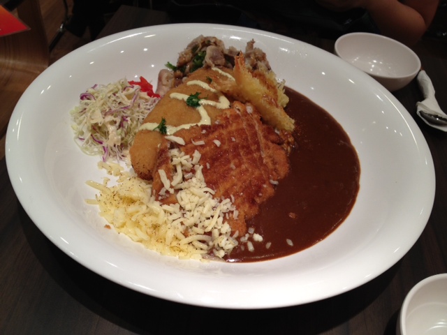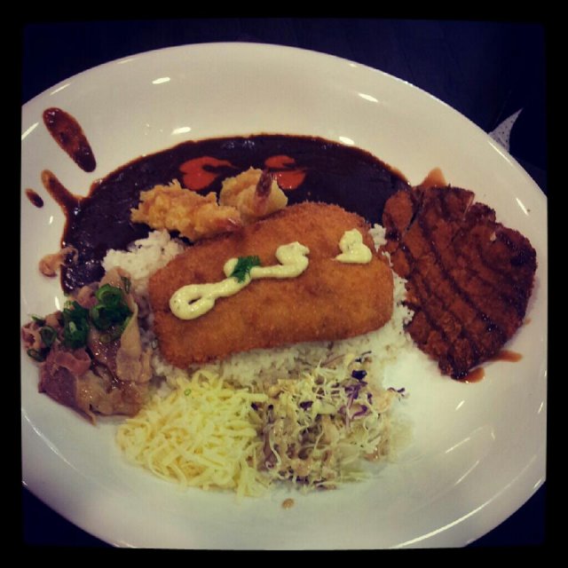 Had always wanted to try this stall after seeing the huge plate decor just outside the stall. Anyway this is an open concept food stall whereby you order the food at the counter than proceed to find a seat with the issued number stand. You choose your choice of curry rice then indicate the number of flames desired. I have to mention that they do not have very customer friendly facing staff as throughout the order i did not hear a word from the girl, perhaps it was a bad day for her. Seats are wooden platform type, nothing much to shout about. Initially when me and my other 2 colleagues sat down, i was concerned that we do not hv enough space coz i see the huge plate on the table next to us. Then i came to know the huge plate only applies to the premium items that cost >$20+. My chicken katsu curry rice was served pretty quickly (it was near to 2pm so no crowd) and were immediately greeted by the strong aroma of the curry sauce. Your flame level is also indicated on the sauce itself (the unique sign is created using garlic chilli sauce look alike). But be warned the flame level is no joke, i ordered a flame 2 and was already tamed quietly with its level of spiciness and i did not entirely mix it with the curry sauce. The chicken katsu came in a nice big slice and goes well with the dark colored curry sauce. I was contemplating how to eat it - whether to mix it all up with the rice or to add on to the rice as per desire. I went with the latter option and was glad i did that, mixing it altogether may hv made it a little too overwhelming. Anyway prices excludes gst so do rem to add 10%+7% in your consideration for food option.…查看更多
