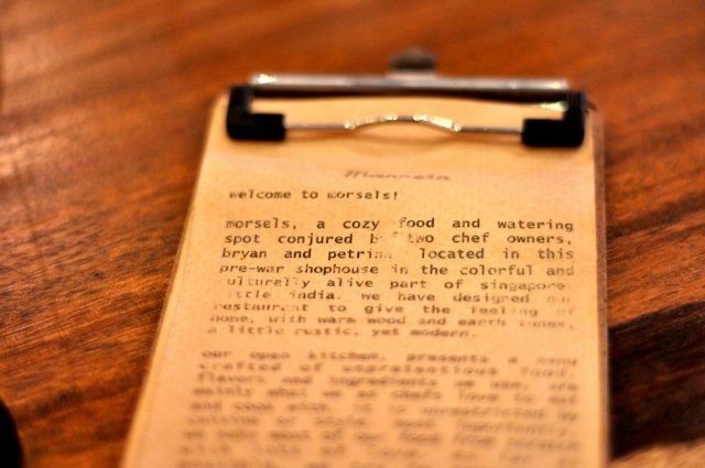 Not only is the restaurant not very accessible, you would very possibly miss the restaurant even walking down Mayo Street itself. However, if you manage to find yourself nestled in this pretty quaint restaurant, you would be quite comfortable in it. Do make a reservation in advance, best be a week before. Because they have a system such that they’d save the seats for even an 8.30pm o-clock reservation. I experienced that. I was there at 6.30pm, and was put at a bar counter, being told that the other tables have all been reserved. But by the end of my meal at 8pm, there were still at least two tables completely vacant. We could have sat there, and not the bar counter. So I was not very pleased with that policy.Their concept is such that food are served in literally, morsels. The menu is designed such that (a) you and your friends get to dine, communal style, (b) their items are of small portions, so you can order multiple dishes and get to have a go at each, and (c) that the usual formality of appetizer, main course and dessert isn’t followed here – the food are not categorized. So an appetizer can be slotted into two main courses and the likes. If you are adventurous, it can be fun. But for me, I’m not comfortable with it, because hey, how do I know which is an appetizer and which is a main course (because that would roughly spell out the portion served and how filled I will be with that order).Pork Belly Skewers ($14++): The price can be steep for this, but I do not mind, because it is exceptionally delectable. The pork belly are firm yet tender, making every bite a quantifiable one. The sauce complements the perfectly-marinated meat. It was salty, but not overdone. Its sweet shoyu sauce balances the saltiness. Every part of the dish was executed flawlessly.Steamed Clams ($22++): Again. Steep steep price for a small bowl of clams. Don’t get me wrong, I’m a huge clams lover. But this certainly did not match up to the price paid. The clams were not meaty enough for me. Granted, the liquid that comes with it is quite the addictive, and quite uniquely tasting with kim-chee as one of its ingredients. It just fell short of magical for me.Firecracker Pork Pasta ($14++): Drizzled in habanero sauce and topped with a scoop of sour cream, the conchiglie pasta with firecracker pork is once again, not something you get every where else. I know the first question when you get the bowl is, ‘should I mix it?’ My first few mouths of the dish was it as it is – my freedom of the amount of pasta and sour cream. Then, I decided it should remain that way. I foresee that mixing it all up would make the sour cream taste too overpowering, thus spoiling the course. Of course, it’s at your liberty. I thought the pasta tasted pretty alright, though again, nothing to yell about.Grilled Octopus Risotto ($25++): After much hype revolving around this, it was much to my letdown that I did not enjoy this as much as many others did. I am counting on that I was just unlucky. Because my highly and eagerly anticipated grilled octopus was (a) burnt on the sides, and (b) not well-marinated. I like my octopus to be taste slightly elastic and springy. However, the restaurant’s rendition was such that I could sink my teeth through in entirety on the first bite. The squid ink risotto wasn’t as bad though, at least. It was on the sticky side, but paired well with the salted egg sauce.Service was lukewarm. And as aforementioned, I’m not a fan of their reservation policy and management of tables. Ambience and food was unique, though unfortunately, not enough to draw me back.…查看更多