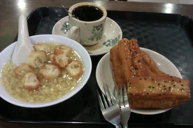 This youtiao stall sells many different flavours of youtiao - sunflower seeds, sesame seeds, almond, green tea, classic. I ordered the set which costs $4.50 that comes with a bowl of tau suan - was not too sweet and tau suan was not bad, but youtiao on top of it wasn't crispy at all; there was also a choice of coffee or tea, and lastly, I chose the sesame youtiao - was not bad but I guess it was left there for too long, was rubbery and no longer crispy.…查看更多