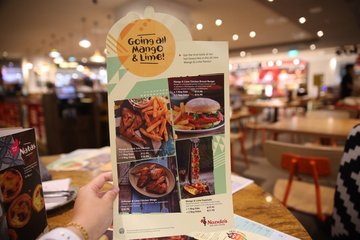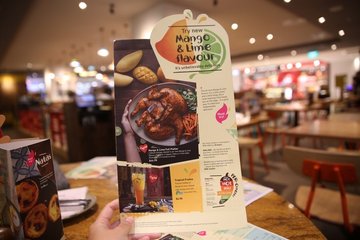Located on the 4th floor of Plaza Singapura with 11 stores islandwide, Nando’s is here, serving up Halal Grilled chicken choices along with a variety of sauces, like the 100 over year old Peri Peri sauce.The dining area is pretty huge and great for large groups. Nando’s also serves up a variety of family friendly food and desserts, so there’s something for everyone.I’m invited to Nando’s today to try out their new Mango & Lime flavour. In the history of Nando’s, this is the first time a new flavour has been introduced. So let’s see what makes it so special!There’s a platter for 4, which you can share the Mango & Lime chicken goodness with your friends and family.There’s also a burger or even a Espetada, dangling for all to see and devour!Mango & Lime Full Platter $44.90++Straight to business, we started off with the Mango & Lime Grilled Chicken Platter. Mango & Lime sauce is touted to be between the lemon & herb and mild flavoured sauces, so it’s the last stage of sauce before you get to the spicier Peri Peri! I was expecting some spiciness here but there was none. If anything, I felt that the lemon & herb had a stronger kick of spiciness! This Mango & Lime flavour is definitely child-friendly!The flavour of the mango & lime had a more distinctive mango than lime taste. There was a lingering mango aroma from each bite. The chicken as always at Nandos, was tender fresh and overflowing with juicy goodness but without the oil!Served with a choice of sides, we picked garlic bread and wedges. The garlic was so good! Evenly buttered and grilled to perfection! The wedges were crisp and well-seasoned.2. Tropical Fruitea $4.90++A tropical medley of mango and lime, infused with orange juice and iced lemon tea. This was a very refreshing drink though it got a bit concentrated at the bottom of the glass.3. Grilled Chicken Cataplana $18.90++Served in an authentic cooper dish with Peri-Peri chicken thighs, grilled seasonal vegetables, spicey rice and cataplana sauce. This is pretty much a portuguese chicken rice that is very colourful and flavourful. The chicken thigh pieces tasted slightly dry but the rice was very tasty and moist. The rice texture was almost towards the mushy side, but still palatable for me. The charred vegetables were the highlight of this dish!Mushrooms, carrots, capsicum and more! I pierced each slice of vegetable with my fork and I thoroughly enjoyed them. This dish was served with the Mild sauce and this is the spiciest level that I can tahan. Any higher, and it would be a torture for me.4. Mango & Lime Espetada $19.90++ (1 side) / $21.90++ (2 sides)Skewered tender marinated chicken thighs and fresh peppers with a Mango & Lime twist. Beautifully presented. The chicken was flavourful with a tinge of spiciness. If you are having difficulty picking a side, choose the Corn-on-the-Cob! It is buttered so generously, it is overflowing with juices as you nibble onto the corn! It’s so good! I would actually come back to Nando’s for this. 5. Peri-Peri Soup $5.90++ add $2 for chickenVery authentic and legit mushroom soup with visible mushroom pieces and they are extremely generous with the chicken. You definitely get your $2 worth! The bread here is the same garlic bread you get as a side and it goes excellently with the soup!6. Chicken Livers & Portuguese Roll $5.90++The menu description writes“You haven’t lived until you’ve tried these. On your own or for 2 people to share.”Eh, I’m not a fan of pork liver and I probably am also not a fan of chicken liver. I’ll just leave it as that, however my dining partners did enjoy this quite a bit.7. Tangy Lemon Tart $5.90++On top of just really awesome Chicken, Nando’s also serves desserts such as Tangy Lemon Tart, bottomless froyo and even rainbow cakes! This tangy lemon tart is quite a pretty one, and decent sized enough to be shared. There’s a subtle and pleasant sweetness naturally sweetened with honey and lemon that will guarantee satisfaction to the sweet tooth!8. Pear-fect Tart $5.90++My favourite dessert of the night, this pear-fect tart is served with sliced of pear between a caramelized layer. The tart layer has a nice level of sweetness and doesn’t get too overpowering. The flavour of the pear could be tasted in every mouthful.9. Natas $1.90++ (Portuguese custard tart)The danish-like pie crust was slightly flaky and crisp, a great texture with a distinct buttery fragrance. The custard was good, but not fantastic. A good choice of a sweet ending to a heavy meal at Nando’s.Overall : Nando’s is one of those restaurants I’ve seen over the years that doesn’t change it’s menu too often, but when they do, it’s a subtle and yet impactful improvement. This mango & lime flavour gives us non-spicy eaters another flavour to choose from, other than just plain and lemon & herb. The chicken will never fail to meet your expectation of juicy and succulent meats.…查看更多