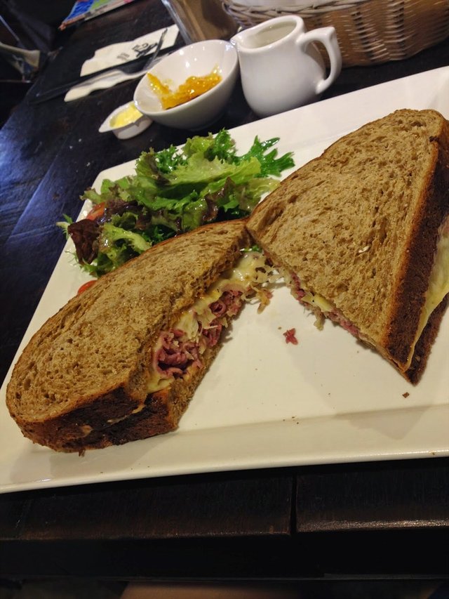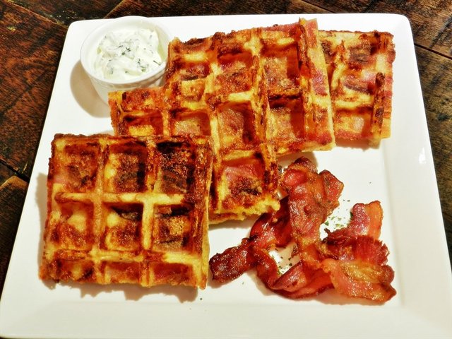 For the full review and more photos, head over to http://toroamtheworld.blogspot.com/2015/12/food-review-nassim-hill-bakery-bistro.htmlNassim Hill Bakery is a cafe by day and bar by night, though they do serve proper food at all times. It's located at the back of Tanglin Post Office and right outside the drop off point for cars.You can find their menu at their website http://nassimhill.com.sgSteak and Eggs ($23+): A 150g grilled ribeye steak topped with two sunny-side up eggs, served with their homemade entrecote sauce. The steak was juicy and very flavourful and not too uncooked for my liking.Mac and Cheese ($18+): This is macaroni baked with creamy bechamel sauce and four cheeses. Even though it was just plain Mac and Cheese, no other ingredients, it was superbbb. The cheese was so tasty and rich, probably because four types of cheese are used here. The portion was just nice, deliberately smaller so you don't feel jelat halfway.DIY Steak Sandwich ($22+): The grilled US Angus ribeye steak with balsamic onions are placed beside the toasted ciabatta cut smaller for easier consumption, and it's up to you how you wanna pair both together and eat it. The was good as usual, same as the Steak and Eggs! The ciabatta was crispy and somehow the kind that you won't get full very easily.Cheddar Cheese Bacon Waffles ($19+): Cheddar cheese and bacon bits are baked into their signature waffles, and served with a side of bacon and chive sour cream. The waffles were really crispy. The cheese inside wasn't the gooey kind, but I could still taste it together with the bacon bits. The bacon on the side was nicely grilled too.Nassim Hill Bakery is a good place to go for delicious food, and they have quite a wide variety of drinks too. Their Happy Hour promotion of 1-for-1 draught beers lasts the whole day from 9am to 9pm.…查看更多