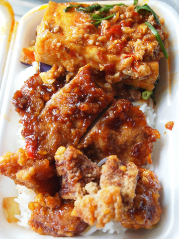 A queue is always there without fail. They are there in the early morning for their famous Nonya style Mee Siam and Lotong then there for the Mixed Vegetable Rice from 10.30 am. A 'Sold Out' sign is always displayed right below the picture whenever the Mee Siam or Lotong is sold out. If go after 11.30 am, most of the dishes would be sold out as well. After all these years, my favourite dishes are still the Asam Fish, Fried Pork Chop, Sweet & Sour Pork and Brinja with Black Bean Sauce or Fermented Bean Sauce. A packet of rice with Fried Pork Chop, Sweet & Sauce Pork, Braised Tofu with Minced Meat and Brinja with Fermented Bean Sauce is only $3.90. Cheap and good, isn't it?Their service is always prompt and effective. …查看更多