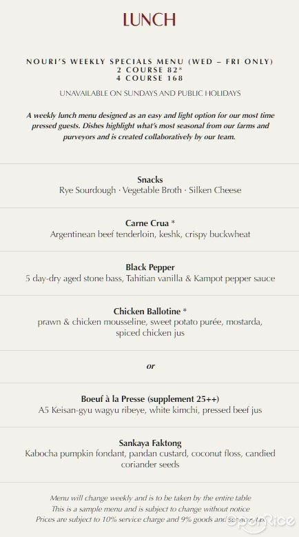 Nouri (新加坡) 網址: https://s.openrice.com/eKbSB01Xzz0G0 地址: 72 Amoy Street, Tanjong Pagar, Singapore 電話: +65 9230 2477