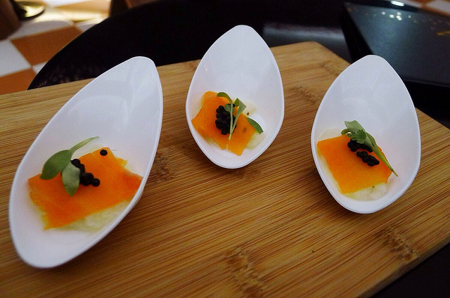 Have you all dine in the dark before? We all heard a fair bit about the concept of dining in the total darkness, haven't we? I think NOX need no further introduction.NOX is located along the shop houses of beach road occupying 2 level of shop space.The service staff welcomed us into the lounge and gave us a drink menu to choose upon. The moment I sat down, the plushy sofa seat reminds me of Gold Class Cinema lounge, quite similar in a sense. Servers explained there is no food menu to choose from, rather there is a secret menu at $88++ per pax that consists of 12 dishes spreaded into 3 courses, appetizers, mains and desserts. Restaurant menu will be change every 6 - 8 weeks and should you have any dietary preference, e.g. vegetarian, please highlight to them.MocktailA citrus combination of orange with a bittersweet finishing taste from a pomelo. Its more sour than sweet per say with grapefruit, lemon juice, simple syrup and Grenadine that give a tart and sweet flavour to the naturally sour fruit.The zesty and minty flavours make this quencher such refreshing. Out of 3 drinks tasted, I rate this the best. Ingredients were close to other drinks with passionfruit, simple syrup, lemon juice, lime juice, fresh mint leave and ginger ale.Being described as not the ordinary strawberry milkshake, it really make me wonder how does it taste like. Drink was milky pink served with little ice cubes and a strawberry. It was more of sweet and less of the sour taste with fresh milk, vanilla syrup, simple syrup, lemon juice and Amaretto Almond Syrup.StartersWe were served with the starters with a vegetarian on the left and 2 mini cones on the right for the non vegetarians. The fried vegetarian had a pleasant scent of truffle oil smell and looks good with its creaming sauce at its base.Starters for the non vegetarian was miniature. Raw salmon was served in the tip of the ice cream cone biscuit added with caviar. The presentation which depicts some plants on the soil had totally taken me away.Before Proceeding into the darknessWe was told not to bring any of our belongings to the dining area and had them kept in the given lockers, not even our handphones or watches with illumination / glow in the dark function. Instagrammers, sorry! For those who needs to go toilet, its best to have the "passage" clear before entering into the darkness.Entering the DarknessWe were quite excited while the door to the dining area swung open and we were greeted by the service staff. Have you wonder how to walk up a flight of steep stairs in total darkness? Well, we conquered the first stage by having 1 hand tapping to each other shoulder in a line and walk up the stair and into the dining.Dining in the darknessIt all started with uneasiness, getting ourselves up at the dining area. When we reached our table, we were led to the back of the chair and have to figure ourselves to take a seat under the clear instructions of course. We were briefed to locate our cutleries (spoon and fork) and the position to place our drinking glass on the table. With every course served, we was told to lean backwards to our chair as these visually impact servers placed the dishes onto our table accurately. Each course consist of 4 dishes served in a wooden tray and placed in a "t" shape. The rule to dine is to start with the dish nearest to ourselves at the "6" needle base on a analog clock and go clockwise.It was a challenge as well as fun locating the dish and place our spoon correctly into our mouth without dropping off the food, afterall this was my 1st time ever dining under such environment. I vividly remembered that our appetizers consist of rocket salad, foie gras, fried calamari, chick peas, lentils etc. While the mains were duck confit, wagyu beef cubes, cod fish. Meat was tender and tasty. Desserts was lava chocolate, popcorn ice cream, lemon sorbet and strudel. Finishing the mealWe stood up and walk a few meters on the carpeted ground using the same "tapping shoulder method" in a line before heading back to the stairs. Luckily the stairs were dimly lit and we could see and walk down under the shades of light. As we proceed back to the lounge, our eyes were tired and as though we had just woke up.We were told to fill up a questionaire to recall and guess what we had eaten. After which, the person in charge will come with an ipad, showing the pictures and naming out the 12 dishes we had. We were surprised by our guesses as it really gave our taste buds a good test.ConclusionAll in all, it was a good 1.5 hours session of experiencing the life of a visually impact human, coping with darkness in their moves. We took our 5 senses daily for granted and being in such environment really gave us a good reminder of how lucky we are to be able to see, hear, touch, taste and feel. Not only that, such dining concept keeps us away from the usual social media / electronics distraction we had during our meals with our friends / partners / families.The only disadvantage here I could ever think of is perhaps not to bring someone here for a first date where you cannot see each other. Ha!We spent about $120 including drinks per pax and reservation is recommended.…查看更多