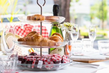 For more reviews, visit my blog at www.ms-skinnyfat.comA revamped brunch menu now includes a decadent Champagne and Croissants brunch (yes croissants) served only on weekends from 11am to 4pm. For $89, this includes free flow bubbly and croissants, along with coffee/tea, freshly squeezed orange juice (we saw them bring in oranges), a choice of bread (4 option) and a choice of eggs (4 options). If you're not up for that, there's also the $29 brunch set which excludes the free flow champagne and croissants. Sandwiches and other brunch items are also available on the a la carte menu. The pancakes were horrible and made us conclude that we should never order anything that isn't French at a French place. They were hard and dry and despite soaking them in the maple-ish syrup (i don't think it's real maple), it weren't enough to moisten the dough. MEH. Should have gone for the Brioche with Nutella or French Toast.That said, the bread basket was fabulous. The croissant and the chocolate pain are deliciously buttery. Layers and layers of thin crisp goodness that peels and crackles away to reveal the moist, chewy and savory center. No additional butter required though butter is always lovely on croissants. One of the better croissants around Singapore. No kidding. Now i understand why they would have a Champagne and Croissant brunch. It was impossible to stop at just 1!The croissants are available for takeaway. If i didn't remember wrongly, each small little baby costs $1.50. A little on the pricey side but they are too good to be missed. They certainly evoked deep wanderlust for France.We had the Eggs Benedict and Eggs Pacifico, one with parma ham and the other with smoked salmon. I wasn't wowed by the eggs, they were adequate but again nothing mind blowing. A richer hollandaise sauce would have made the difference. The muffins used were quite good however.I would make a trip back to O Batignolles for their out-of-this-world croissants but i'll never do their brunch sets again. Service was a little too shoddy for my liking. …查看更多