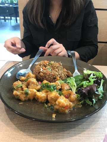 My Property Officer and me went to try Lunch Specials comes with Iced Lemon Tea due to THE REAL DEAL menu being given to us upon sitting down, so I ordered Minced Black Pepper Pork Pasta and she ordered Salted Egg Chicken With Fried Rice.My Property Officer commented that the Salted Egg Chicken With Fried Rice is just Deep-fried chicken with Creamy Salted Egg Sauce Set only.I really hope that the chef will create his own special salted egg sauce and launch more new relevant dishes such as Chicken, steak, shrimp combination fried rice for diners to choose in the future.For me, I think that this restaurant must serve with a mushroom soup for lunch specials will definitely create lunch crowd.…查看更多