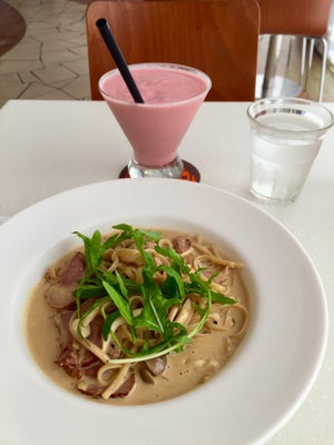 Due to the hot weather, the air-con was blasting indoors. This made it real cosy and cooling as there were many people dining there. Overall pleasant. The staff are very friendly and attentive too! We ordered the Fish and Chips and Mushroom Pizza. The fish was fresh and nice but the batter was a little too thick. The chips was thick though! nice and crispy.The interesting salad had walnuts in it which is good and healthy as food for the brain. Mushroom Pizza was very healthy tasting and generous portion of toppings and cheese, but it was a little dry.There's not much here to shop around, I live around this area.…查看更多