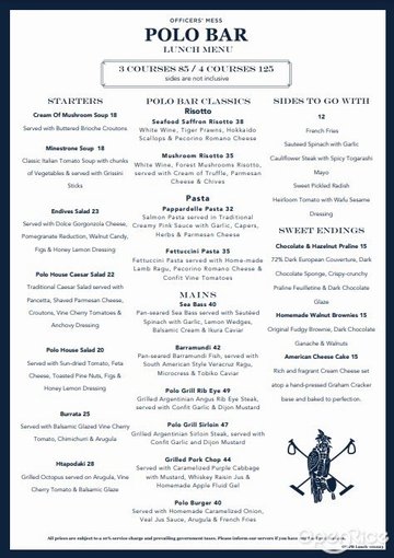 Officers' Mess Polo Bar (新加坡) 網上訂座即賺Rice Dollars 網址: https://s.openrice.com/eKbSB01cz6100 地址: 2 Cook Street, Maxwell Reserve Singapore, Autograph Collection, Tanjong Pagar, Singapore 電話: +65 8866 0159