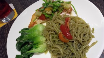 Had a quick lunch at OKB on a Wed afternoon.Seared chicken breast (with watercress) with Vietnamese Pesto noodles This is an interesting dish, and surprisingly very yummy! The chicken was cooked to perfection, really tender and a little crispy on the outside. The noodles were chewy and Q, and the pesto sauce refreshing. The watercress and side veggies were soft and juicy. :)Turkish Soda- PomegranateRecommended by the staff as a fav pick by their female customers. But I find it a little too sweet for my liking. I was given a seat on the first level near the bar counter. Service was good and fast. I would love to go back for dinner sometime~ Yumz.. …查看更多
