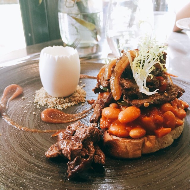 Stir fried chilli beef rib eye with 63 degree egg in the shell
