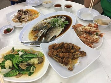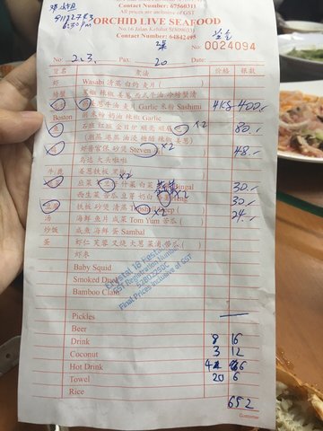 Located in the quiet area of Sembawang is Orchid Live Seafood, popular with Chinese families who flock here for their lobster cravings. The car park is free but it is limited to 20 or so cars, most cars back in and block each other, hence the restaurant staff would run in and out calling out car number plates to kindly ask the customers to move their cars.1. Batin Fish 40It was my family's first time trying this dish, it has a very smooth texture that almost melts in your mouth, the black sauce itself wasn't too heavy in salt or msg, so I didn't really feel thirsty which was nice.2. Fried Vegetables $15Apparently the vegetables served here are grown just behind Orchid Live Seafood. Hurray for using local and fresh produce.But I'll be honest, the vegetable leaves did have some black marks on them. No holes at least! The vegetables tasted alright, nothing to wow about. Just enough to make you feel good about your diet.3. Steven's Chicken $24Named after the chef Steven, this is basically fried chicken, fried so hard core that the bone is brittle when you bite on it! The crispiness of the chicken skin is addictive and we wiped out this dish in seconds! I needed another serving of this!4. Lobster Porridge $100/KGThis is what we came here for! Lobster tasted alright, although I know these aren't fresh lobsters, in comparison to what I had in Boston, it's still "fresh" enough to satisfy my cravings. The meat comes right off the shell! The porridge was also so flavourful and good, that I lost count of the number of bowls of porridge I had!Overall : Decent chinese family dining location, $40/pax.HUGE TIP! Definitely sit outside, do not fear the mosquitoes for the indoor dining area, with the air-con is so deceptive as the air con are so weak! You would think that since Orchid Live Seafood is filled to the brim everyday, they would at least be able to repair the air con or at least get more powerful ones. There's like 6 window AC units in that small area of about 7 tables and it's useless! Which is why everyone just orders the $1 per stick of Potong red bean ice cream after their meal!…查看更多