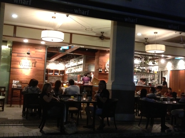 Saturday night at Robertson Quay is surprisingly quiet and pleasant -there are throngs of people but not so much that it is overwhelming. It's lively but also quiet enough to hold a decent conversation with friends over dinner.The Oyster Bar & Grill Wharf at Robertson Quay specialises in oysters (well that wasn't too unexpected) and seafood, and they also boast an interessting selection of 100 different mojito flavours. Their wine list is also stunningly impressive!We ordered a Scallop & Mushroom Ajilli ($12.50), Prawn & Mushroom Ajili ($14), Hamburg Steak ($19.50), Calamari ($12), Truffle Fries ($13) and a bottle of French red, Le Vignes de Bila-Haute at $80.The prawn & mushroom ajilli (ajilli is served with bread!) is cooked in a sea-salt & white wine broth with garlic, tomatoes and chilli. The seafood is really fresh and the prawns have this slight crunch to them when you bite down...The prawn & mushroom combination is relatively safe for anyone who isn't too huge a fan of oysters (they have the oyster option at $16!). The broth tastes of sea salt and olive oil, and is great to be eaten with the crusty bread.The scallop & mushroom ajilli is also pretty popular among people -the broth used is similar, (if not the same) -a delicious concoction of freshness and saltiness. The scallops border on creamy when you bite into them, yet you can taste the freshness of the ocean in its aroma -the flavours are all raw and natural. The mushrooms go better with the prawns in my opinion, but it's fantastic when it soaks up the broth...the burst of flavours is a sensational experience!The calamari is served with a cream sauce. The squid wasn't overcooked, and the outside was a delicious crisp that wasn't soggy with oil. The batter wasn't overly flourry and it was also lightly salted (a nice touch that made the calamari good on its own -to enjoy its freshness and crisp goodness without having to coat it with creamy sauces!) Great for sharing especially if you are with 3 people (the portion is just right for 3)The hamburg steak took longer than expected to arrive (we had joked that they were hand-mincing the patty after catching the cow haha), and is served with a vegetable stew. The patty is juicy and not overly seasoned so you can really taste the beef. The patty is also a generous size, so that's a plus point given that one is paying $19.50 for this!! The vegetable stew was a tad strange though, it came across as an Asian adpation of ratatouille, with a hint of Indian spices and just a teensy bit of curry powder that resulting in this slightly mushy vegetable dish which was slightly creamy. We felt that this was an odd pairing with the steak though.What I liked about the truffle fries here is that it's served in a basket, with some on the chopping board -such presentation is lovely and thoughtful! I'm not a fan of shoestring fries and I like my fries thick-cut, but I make an exception for truffle fries because I believe you need the slimness of the fries to capture the aroma of the truffle and chunky fries would ruin the subtle aftertaste. The fries weren't too oily, and they were piping hot. We didn't really need the dipping sauce to be honest, it was good on its own. This is perfect to share too!We decided to order a bottle of wine, and their wine selection is impressive, ranging from Chilean, French and Spanish (just to name a few) wines in both reds and whites. The menu has this chart that shows how full-bodied/dry the wine is, and selections can go up to $140++, with the cheapest being a French merlot at $38. This bottle is in the mid-range at $80, a full-bodied red wine from France. This wine is deliciously fruity for a red, it's not dry and has a nice sweetness to it that accompanies food well because it's so easy to drink and goes down so smoothly.The service here is lovely, and the staff is attentive, always with a smile on their faces. One would come here to be immersed in a mind-boggling array of oysters (usually at $8 per piece), a good wine and mojito selection and a fantastic seafood! We would recommend the ajili, served with bread as it's really worth the price and the seafood is super fresh! You may also want to give the fries a go, they're perfect for sharing! Lastly, do yourself a favour and indulge in a bottle of wine here! :)Note: The total bill after GST & Service Charge is $174 for 3 persons!…查看更多