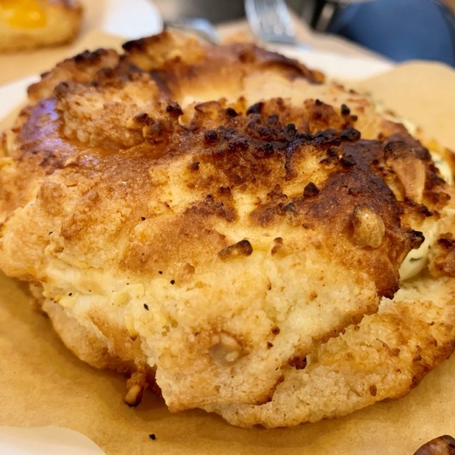 Decide to grab breakfast from PB a this little shiny bacon sweet roll caught my eye, there is a chilli version however I didn’t think my stomach could handle heat in the morning. When back at the office I plate and cut the bacon roll, inside revealed a layer of pastry and rolled around egg and herbs. I take a bite of this delightful looking roll and my first response is that it’s a little too sweet.It is good but if the amount of honey was reduced and the bread thicker/more dense to complement the bacon and egg it would be a winner. And because it’s too sweet for my palate (yes I know it’s a sweet bacon roll) it drops down to a two star as I won’t be ordering it again. …查看更多